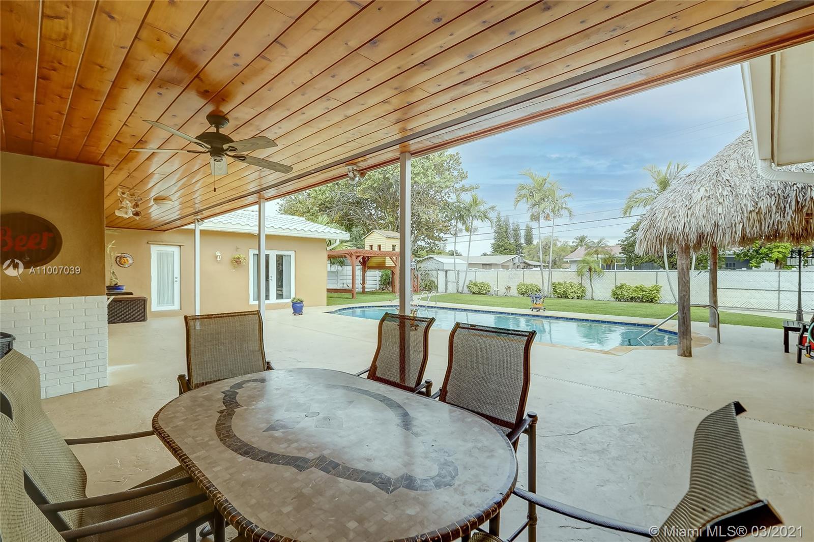 *Double Lot, Great for Entertaining w/ yard, pool, tiki hut* Spacious single-story home w/ split floorplan & 2 master suites. NEW Porcelain tile (2020), Kitchen remodeled in 2004 with granite countertops, saltwater pool redone in 2015. 5th bedroom used as office. 1 master perfect for in-law quarter with a sitting area and separate entrance from the backyard. Both Master baths redone. New hot-water tank (2020) Roof (2002), PVC & Copper Plumbing, NO HOA. Some impact Windows + Accordion Shutter + Panels. Great central location near I95, Turnpike. Inspection Done.