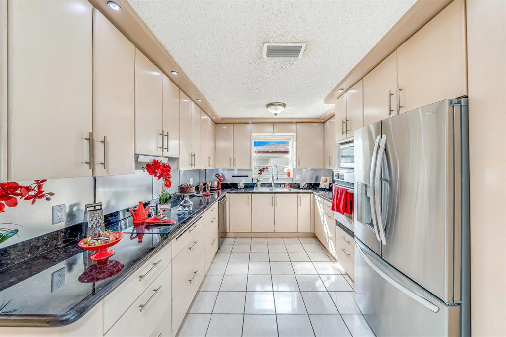 Spacious & open 3 bedroom plus big playroom/bonus space/den (could be 4th bedroom), 2 bath, POOL, 1 car garage with double wide driveway, huge backyard with covered & screened in patio with a huge sparkling swimming POOL that was just diamond brighted with the deep blue color called Azzure. New roof from 2018! Tile flooring in the living areas and laminate flooring in the bedrooms. Kitchen features granite counter tops and stainless appliances. There are tons of cabinets plus a wall of cabinets in the dining room! Large bonus room makes a great 2nd family room, playroom, man cave, office, gym etc. Move in Ready! A tropical paradise awaits you outside featuring a huge fenced in yard with mature trees including several mango trees & birds of paradise.