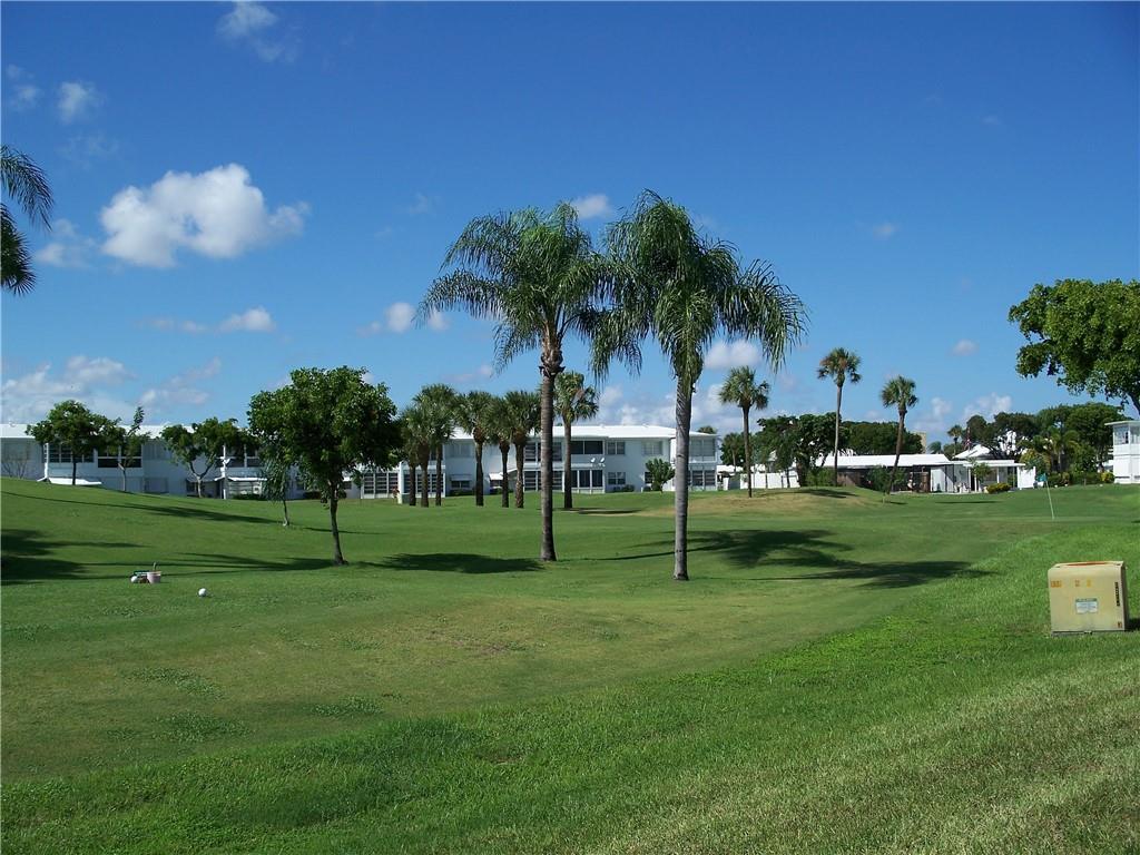 Immaculate home in golfing community. Free golf for all owners. NO LAND LEASE. Back yard features privacy berm and beautiful Frangipani tree. Tiled flooring in the living/dining area. Washer and Dryer are inside. Pets welcome. Unfurnished. Patio is located off Florida room for entertaining. Pets welcome. Close to beach and entertainment. Leisureville features two heated swimming pools, two clubhouses, community bus, golf course and activities for seniors. Maintenance includes water, painting the exterior of the home and cleaning the roof, on site management, and lawn care.