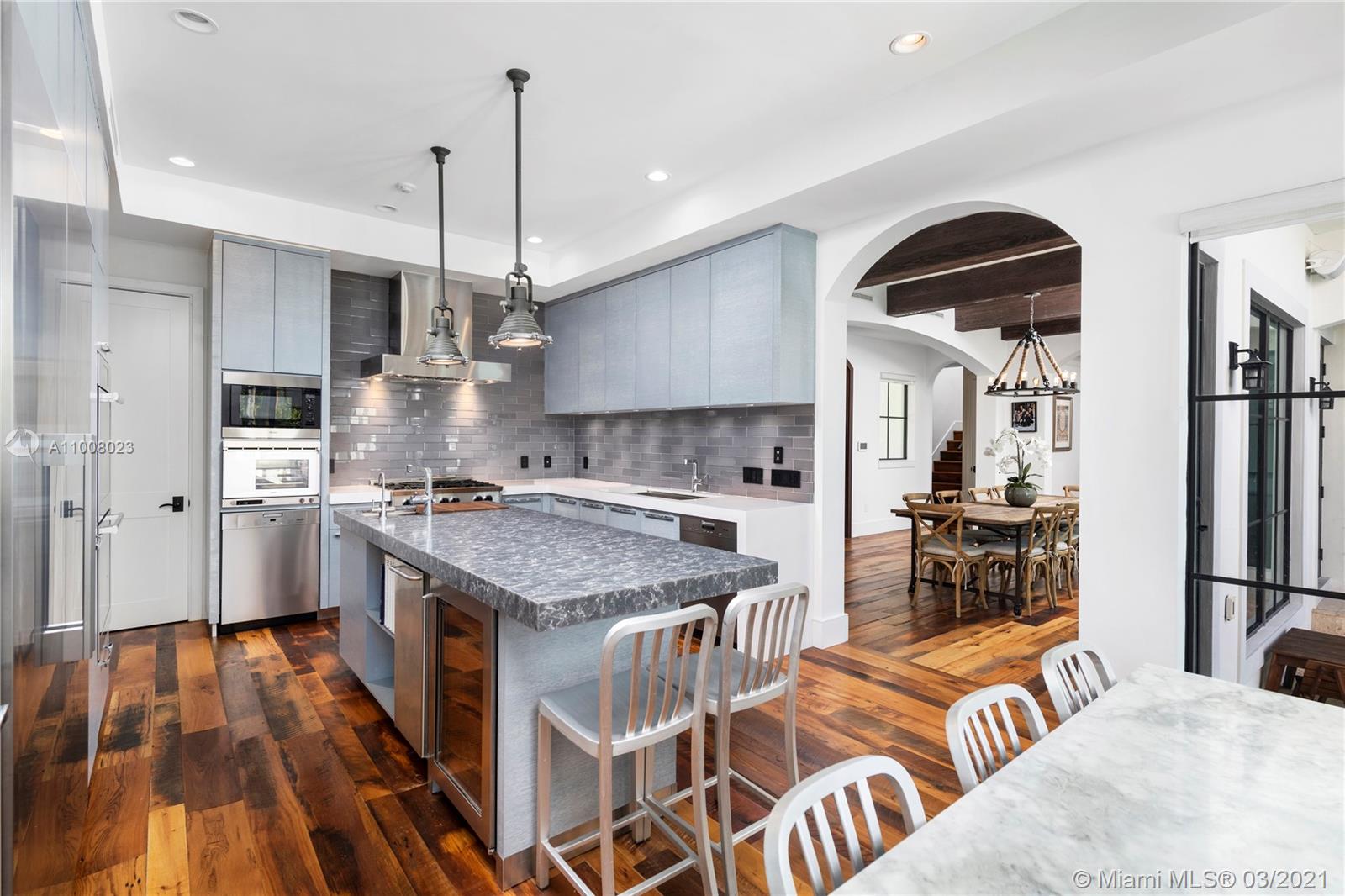 Impeccable 3 story home with an abundance of luxury amenities and 360 degree panoramic roof deck with stunning water views. Home custom built by existing owner. This open and bright residence, with its timeless transitional design, balances old and new, from its 100+ year old FSC certified solid reclaimed wood floors to its fully modern bathrooms and chef’s kitchen equipped with top of the line appliances and fixtures. Private outdoor oasis with large summer kitchen, 50 ft saltwater pool, large sun shelf, rock climbing wall and kids play area. Enjoy a movie on a 123” retractable screen as your living room transforms into a home theater complete with a 4K cinema projector, surround sound and motorized shades.. Gross FAR, including 2 car garage, is 5,967 sq ft per architectural plans.