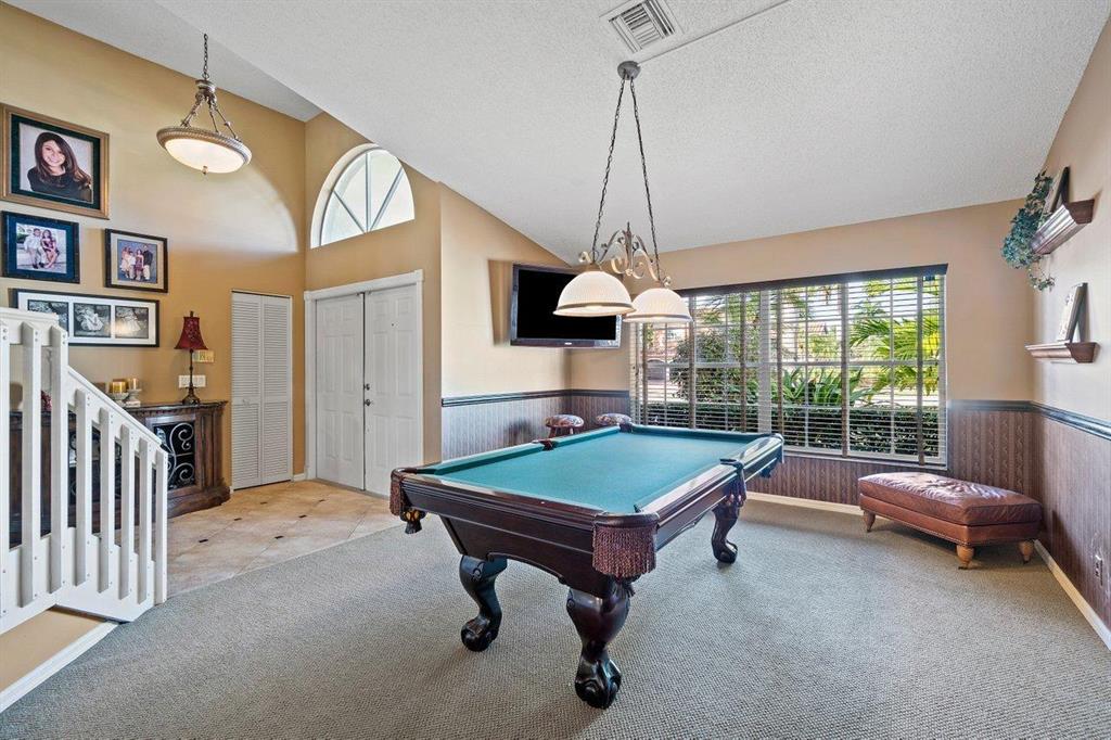 Meticulously maintained 4 bedroom / 3 bath pool home plus bonus room is located just off a quiet cul-de-sac. Extra room perfect for a home office, theatre, playroom, gym or 5th bedroom. Very desirable Mar A Lago model features guest bedroom and full bath downstairs, large master suite upstairs with balcony overlooking pool and patio plus two additional bedrooms up. Great home for entertaining. Kitchen offers a spacious eating area overlooking the family room. A/C 2020, pool pump 2019, dishwasher 2019, refrigerator 2018, water heater 2017 and roof is 14 years old. Boca Isles North is a 24 hour guard gated luxury community featuring: resort style pool, exercise room, tennis courts and a tot lot. Zoned for A rated schools!