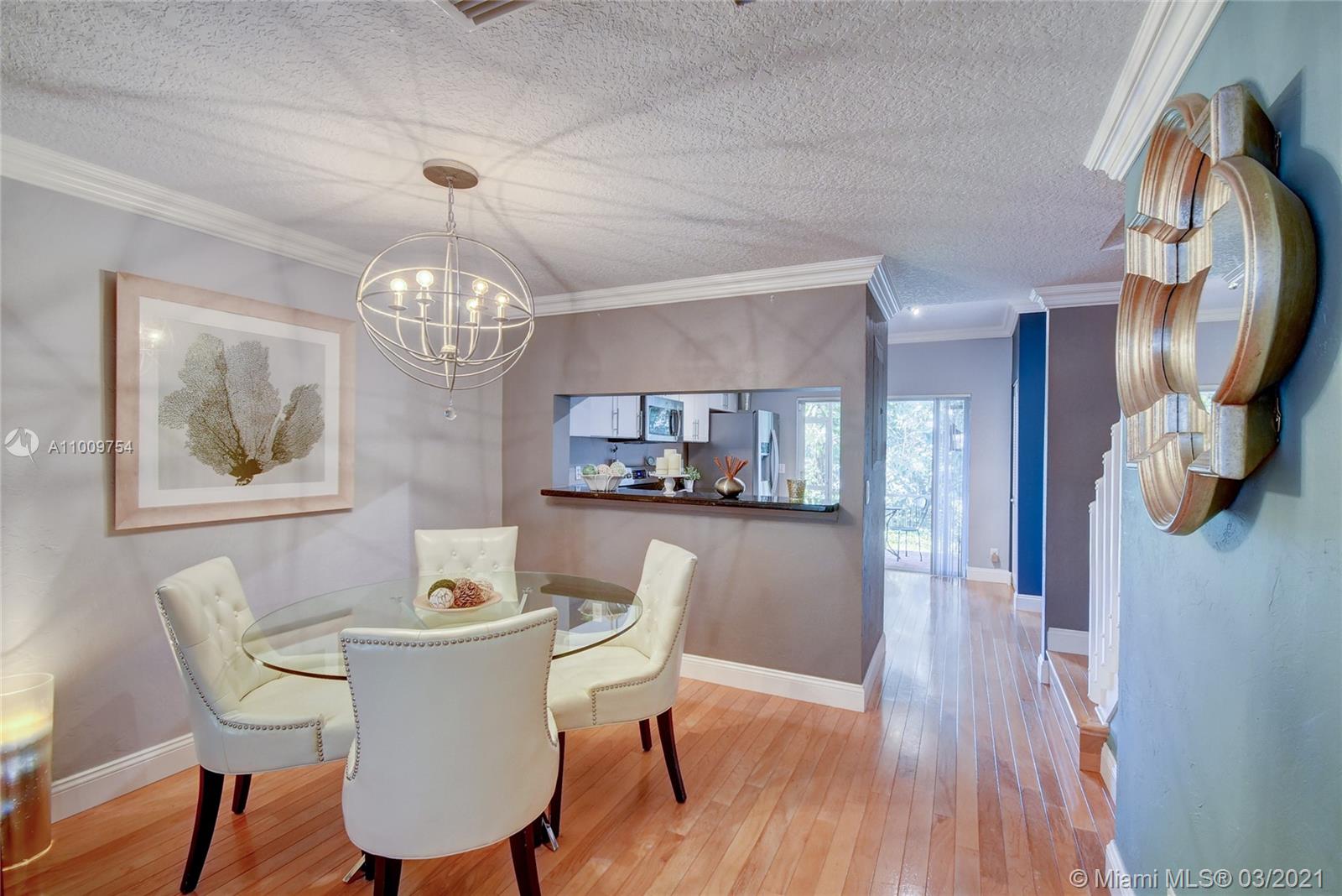 GORGEOUS 2bed/1.5 bath townhome in sought after Somerset is immaculate with many updated features. Spacious kitchen has stainless steel appliances, refaced kitchen cabinets with granite countertops, ground floor has hardwood flooring & crown molding, upstairs flooring is laminate with tile in bathroom, popcorn ceiling replaced with knock down, upstairs bathroom is elegantly remodeled with dual sinks & is accessible from both the master bedroom or hallway, view of the golf course from large master bedroom window, custom closets, A/C replaced in June 2014, water heater replaced in 2015, accordion hurricane shutters. Relax in your cozy screened in patio with view of the golf course. This well maintained community has a pool & BBQ area, is centrally located, & minutes to all major highways.