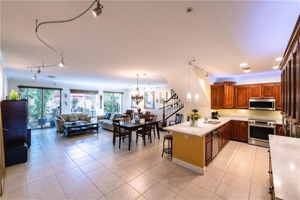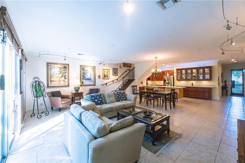 Spacious townhouse with a fabulous 24x24 Great room. Kitchen with newer stainless steel appliances, butler's pantry, custom cabinets & lighting. Island with quarts countertops. This 3 bedroom/3.5 bath has walk in closets, master suite has spa, separate shower, dual sinks. Patio off the great room to grill out and entertain.Impact doors and windows with a private rooftop terrace 1200 square feet with a full bath.Relax and enjoy the view of the city while sipping on a glass of Vino. Two car garage. Walking distance to beach, shopping & fine dining.