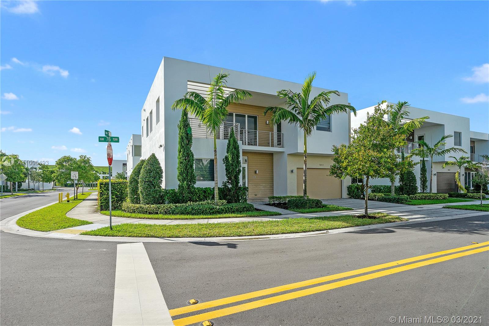 Unique and contemporary house located in the gated community Modern Doral. The house has 5 bedrooms / 5 baths, one bedroom and full bath is located in the ground floor. 4 Bedrooms on suite. Gourmet kitchen, summer kitchen, private pool, 2 balconies, lanai, laundry room inside the house, covered terrace, driveway with pavers. The house has been built with the last technology to enjoy the advantage of one smart house with energy efficiency appliances and full security system. Modern Doral offers a great community club house, fully-equipment fitness center, oversized pool, bike trail, library, summer kitchen and wet bar.