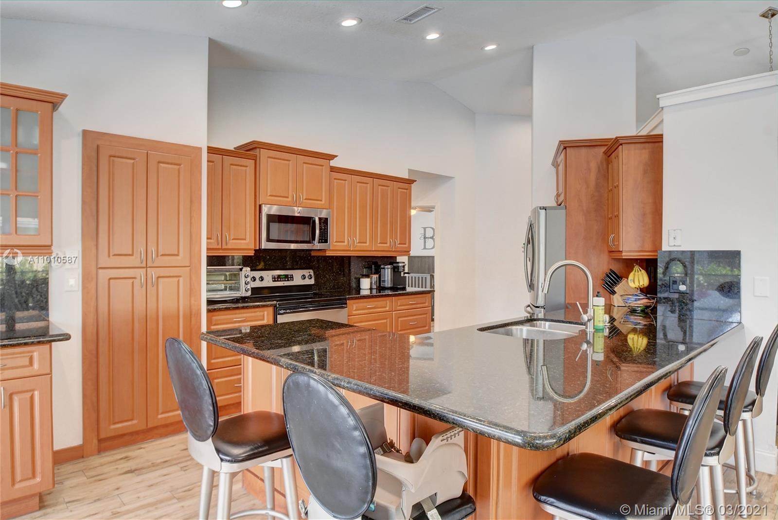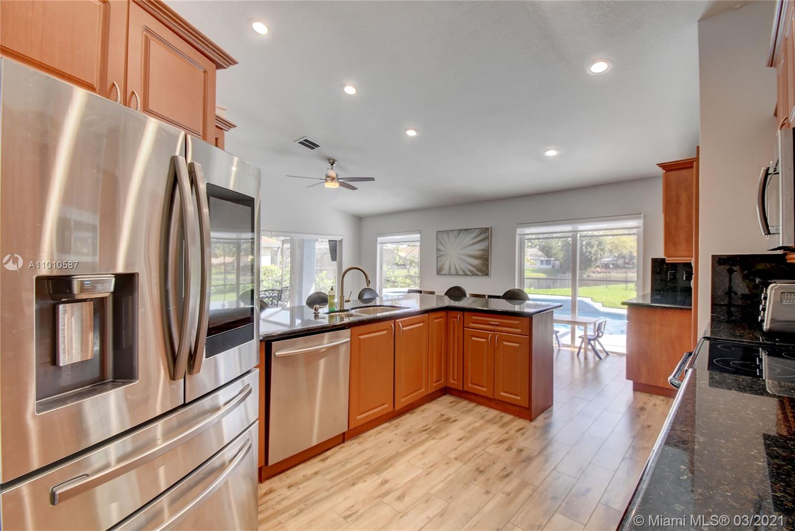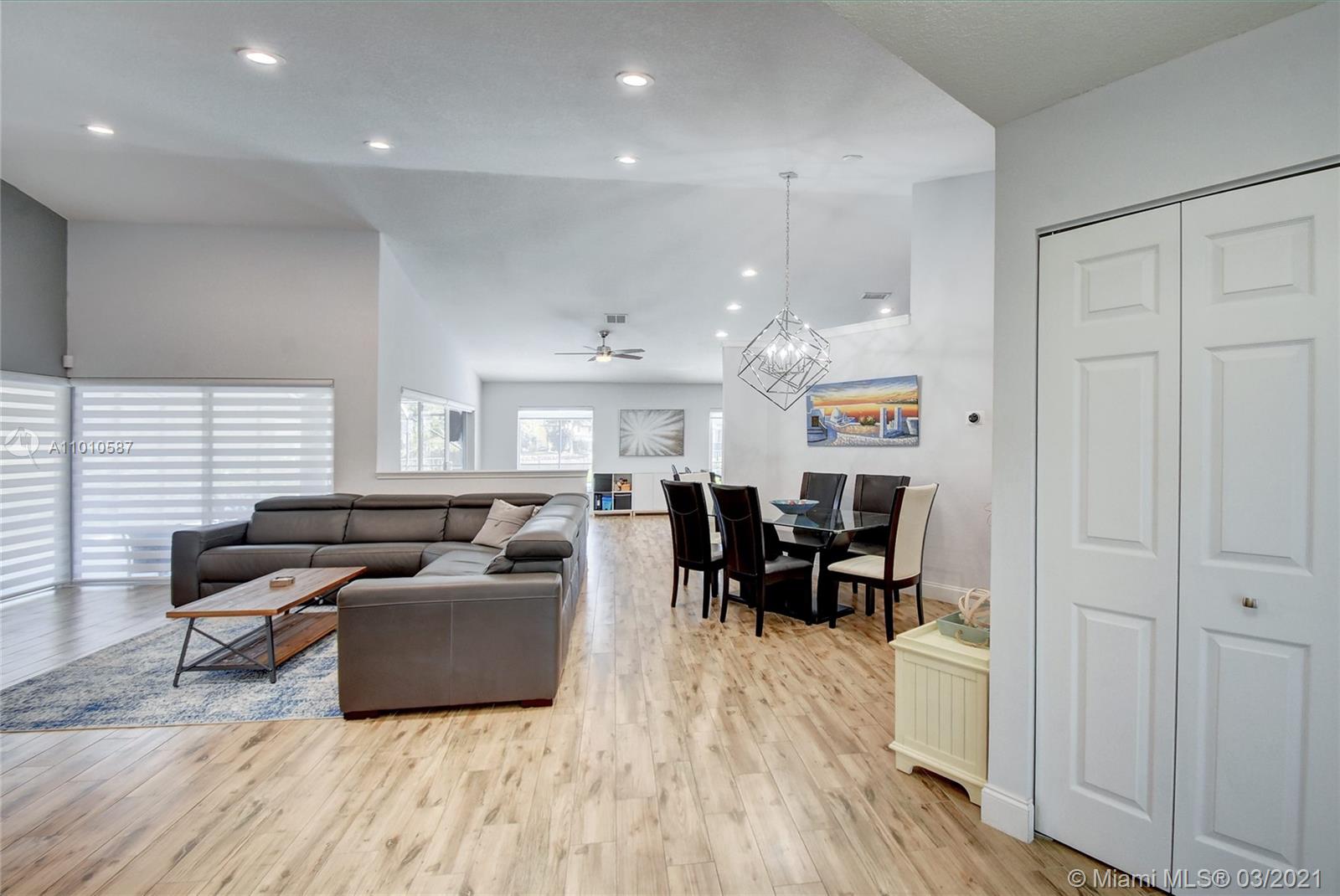 Stunning one story lake front Cooper City home completely upgraded! New wood-like porcelain tile floors, three renovated bathrooms, impact windows and doors, freshly painted interior and exterior. Backyard is an entertainers dream with a covered space for table and grill and a newly renovated screened-in pool and Jacuzzi. Large fenced-in back yard with an ample front yard. Newer A/C, tankless water heater, laundry room with LG washer/dryer and split floor plan. Walking distance to JCC. A+ school district. Close to highways and restaurants! Chandelier and wine fridge excluded. Showings begin Friday 3/12.