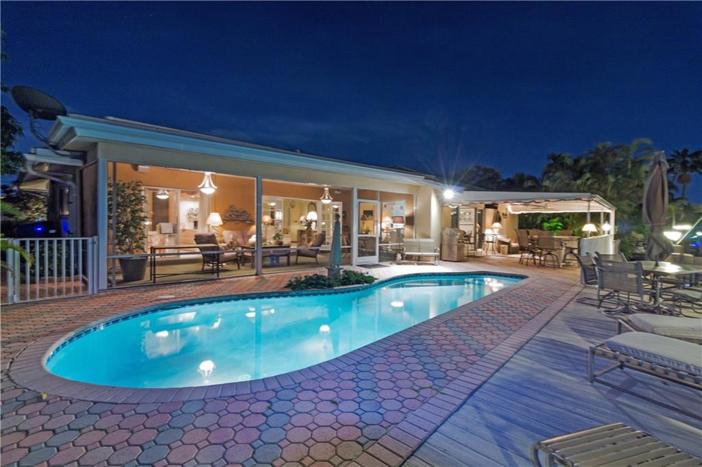 See it to believe it! Lovely waterfront home with all focus on the water! What makes this home unique is the "Flow". Screened porch, LR,Kitchen & Covered Patio all connect for EZ living or party flow. 4BR 3BA home(1BR used as den/office) Mstr. faces water.2nd Mstr. has sep. entrance to pool area. Impact garage door & all windows/doors except 3 on porch.Kitchen updated-CAST IRON PIPES REPLACED! Heated pool & New AC. Close to everything but far enough for privacy. Sunrise or sunset -beautiful! 80' waterfront with dock and deck- Boaters, CLEARANCE AT HI TIDE IS 6'.(See last photos for type) Access to ICW- cruising to restaurants, fishing or just a ride. Walk or bike to beach. Amazing neighbors.Fenced yard.Great Private Schools nearby.Owner says "Wouldn't sell but want to be closer to family"