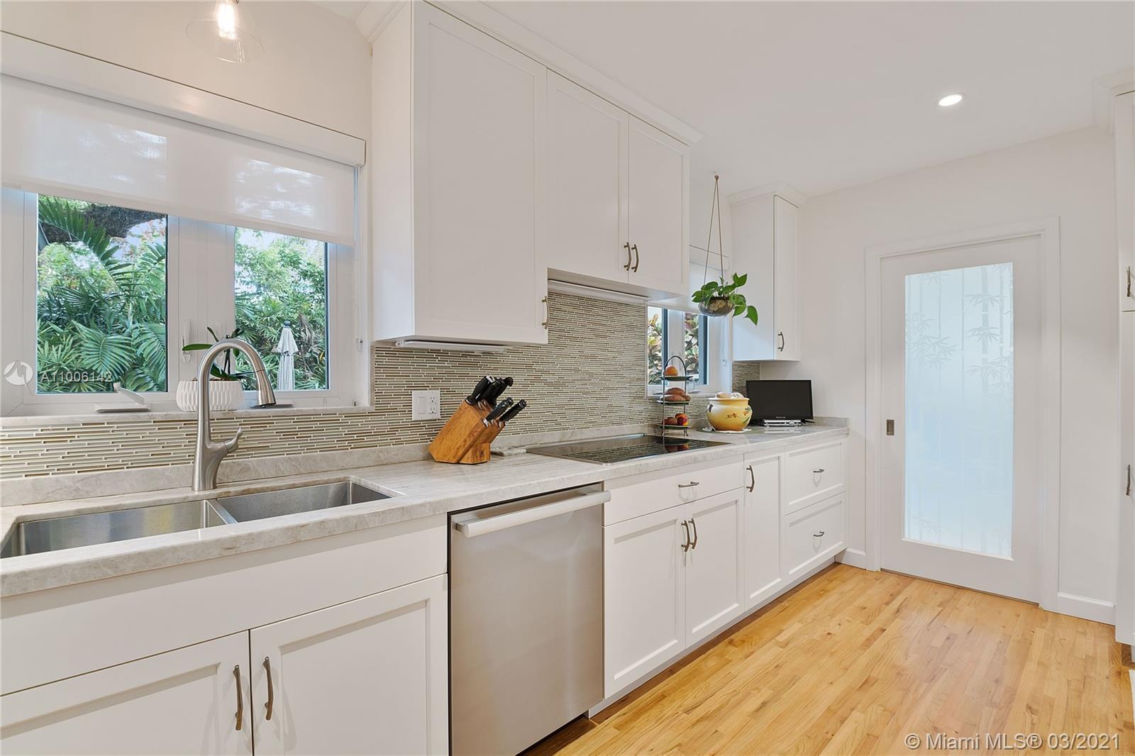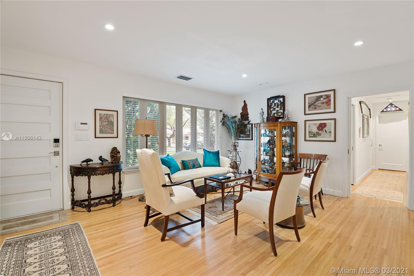 A rare opportunity in North Gables, never been on the market! Couple of blocks away from Biltmore Golf Course and Historic Venetian Pool! Interior location on huge 13,000 sf lot with plenty room for a pool or add on. Totally remodeled and renovated! Flat tile roof is 2018, impact windows & doors, new garage door, new hardwood floors, new kitchen with quartz counters and stainless steel appliances, new bathrooms, everything re-done! Laundry room, garage has a/c great workshop. Large closets, family room, great room, central a/c 2010, new electrical, pvc plumbing, city & sewer, ADT alarm system & cameras, heavy wooded lot with Old Oak trees, Zone "X" not flood zone and no flood insurance required. Truly Nolen termite warranty.