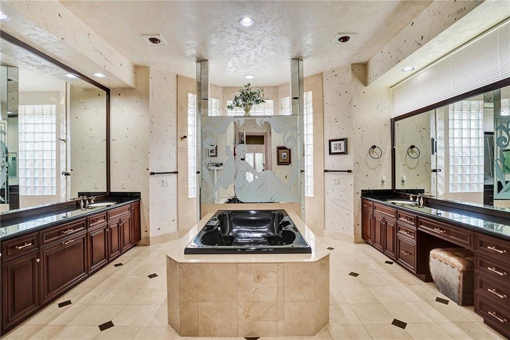 Gorgeous Waterfront Home in Plantation Palms. 5 Bed, 4.5 Bath. Gourmet Kitchen: Refinished Wood Cabinets, Pull-Out Drawers, Granite Counters, Sub-Zero Refrigerator, Double Oven Convection, Thermador Induction Stovetop w/Down Draft, Breakfast Nook, Snack Bar, Walk-in Pantry. Master Suite: Sitting Area, His/Hers Walk-in California Closets, 24x24 Marble Floor, Jacuzzi, Walk-thru Marble Shower, Dedicated Tankless W/H, Water Closet & Bidet. Fireplace, Wet Bar with Wine Fridge. Updated Baths. Temp, Controlled Wine Room. A/C’s: 2011, 2011, 2014-UV Light Sterilizer. W/H–2012. Newer Laundry Cabinets & Counters–Chute. Plantation Shutters. New Mahogany Front Door, Wired for Sound, Refinished Staircase. Salt Pool: Gas/Solar Heat. Walk-in Attic Storage Room. Gated. A+ Elem & Middle. Close to Highways.