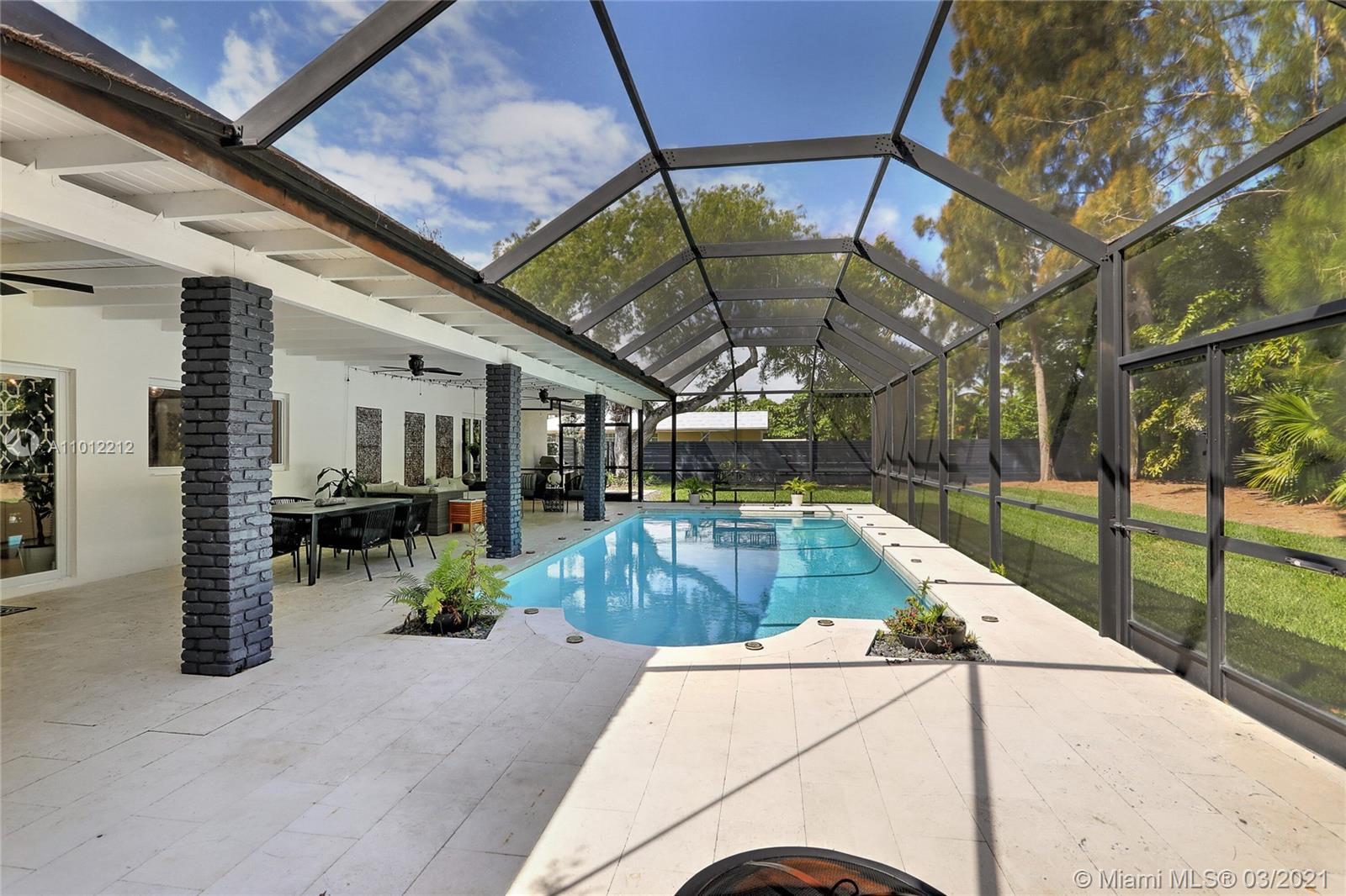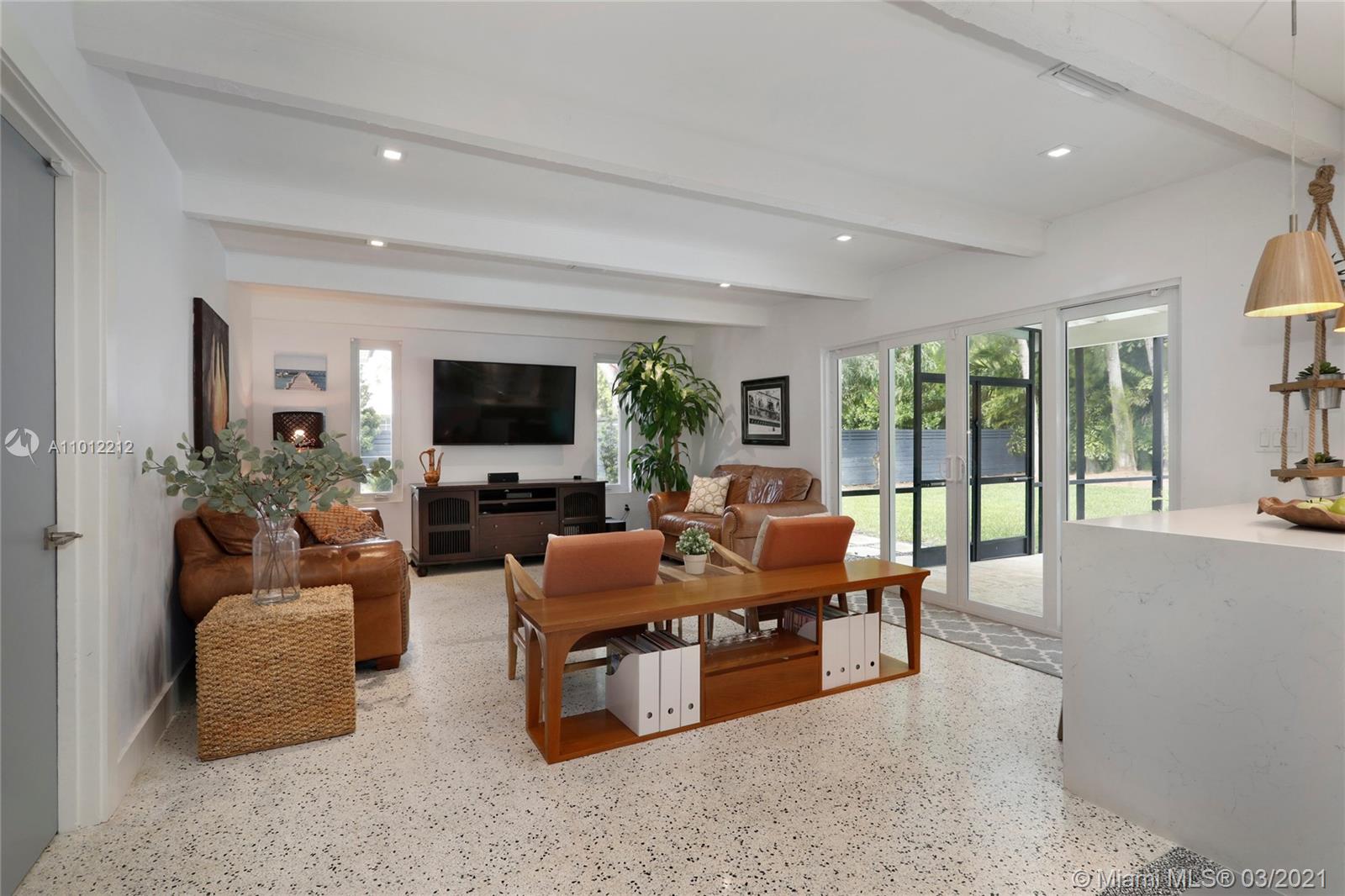 Welcome home! This beautiful home offers open-floor plan, 4 bedrooms + office, 2.5 bathrooms, lots of natural light, and private outdoors with pool area. Completely renovated in 2017, every detail of this flawless home was carefully selected by a professional interior designer. New items include: kitchen, bathrooms, roof, plumbing, electric, all impact windows/doors, pool pump, pool deck, well for sprinklers and fence. All work done with permits. Beautifully restored, original terrazzo floors throughout. Top of the line finishes & quality. Custom closets. Generator with propane tank. Screened pool area + privacy and landscaping. Family neighborhood on desirable low traffic street is perfect for walks to the park and bike rides. Call today for showing!