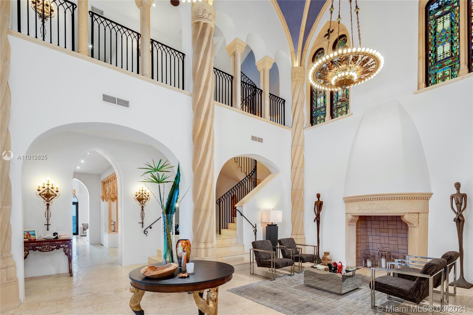 Your castle on the water awaits you. This completely custom-built 2009 estate combines Gothic architecture with contemporary finishes creating a modern fairytale waiting for you to call it happily ever after. Featuring over 12,000 square feet of living space, 6 bedrooms, 7 bathrooms, great hall, 30 foot vaulted ceiling, stone fireplaces, antique stained glass windows, French cast bronze chandeliers, Jerusalem stone floors, Cast stone window tracery, gourmet chef’s kitchen with La Cornue stove, keystone-edged infinity pool, elevator, rooftop sundeck, and cement dock. A must own for anyone passionate about architecture looking for that perfect harmony between the old world and the new. An incredibly rare architectural statement in South Florida.