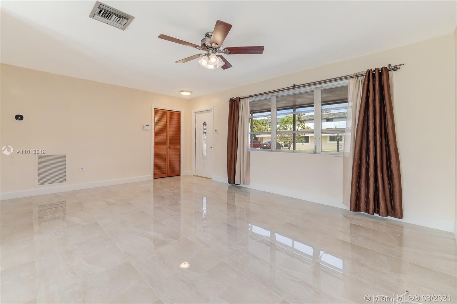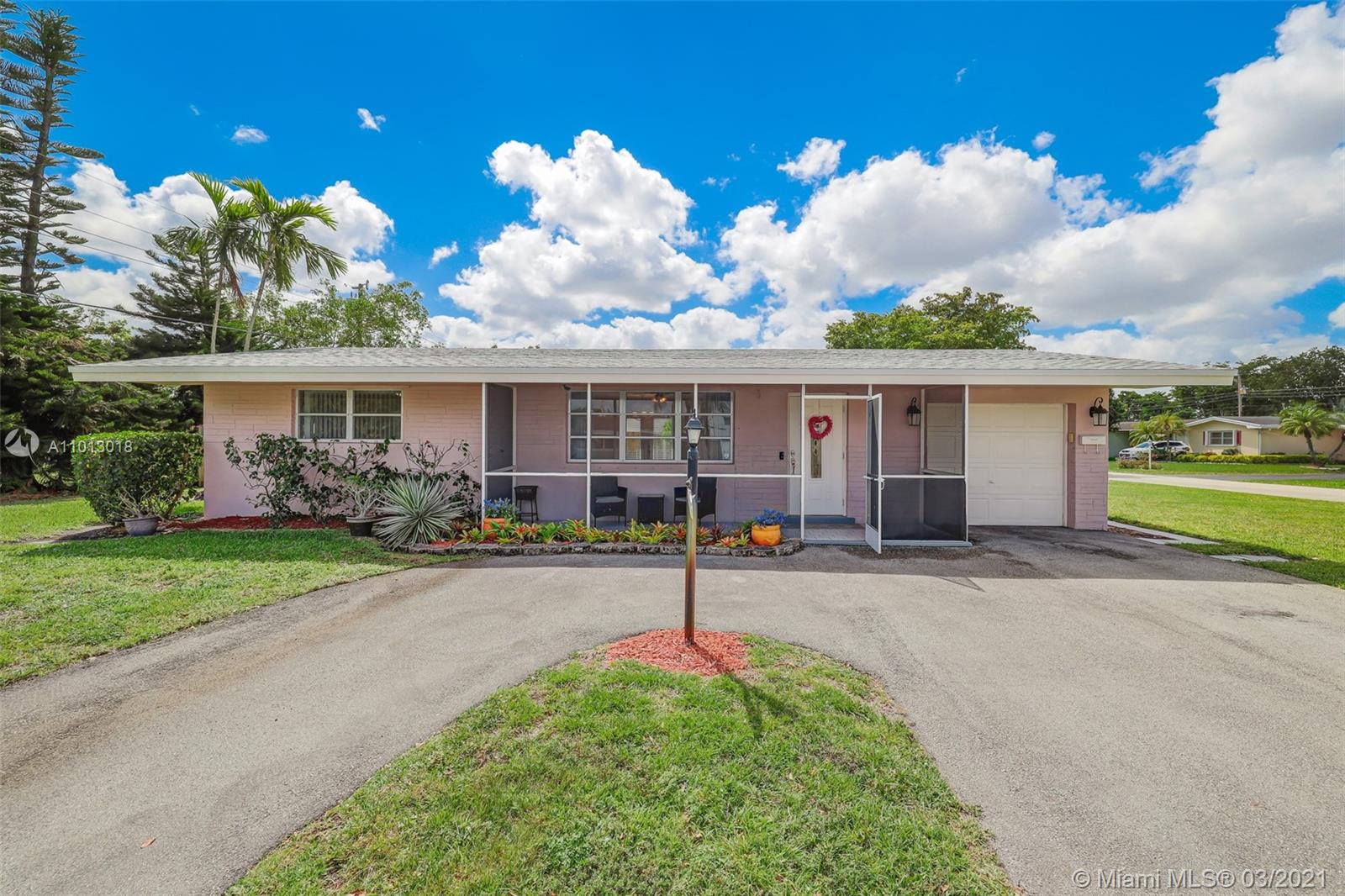 Beautiful starter home, 2 Bedrooms 1 Bath 1 car garage, corner lot, with a New Roof, New Porcelain Tile Throughout, Remodeled Bathroom, Updated Kitchen and freshly painted. Impact French doors that open to the back yard that has 6' wood privacy fence with plenty of room for family gatherings or add a pool.
