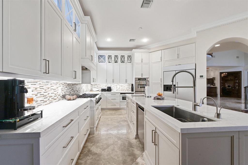 Stunning transitional inspired estate situated on prime corner lot! The desirable open floor plan features expansive living space along with 5 large bedrooms and 5 full baths/2 half baths plus office + media room. This home features beautiful travertine marble floors along with elegant hardwood. The oversized white chefs kitchen has been recently updated with large island and quartz counter tops. Enjoy your favorite movies from the top of the line theatre with custom seating and bar. This home features a full home generator and brand new impact windows are included. Step outside and enjoy the tranquil, private backyard with oversized pool and custom water feature. Amazing Opportunity! The oaks features a stunning newly renovated 25,000 square foot clubhouse with amazing amenities