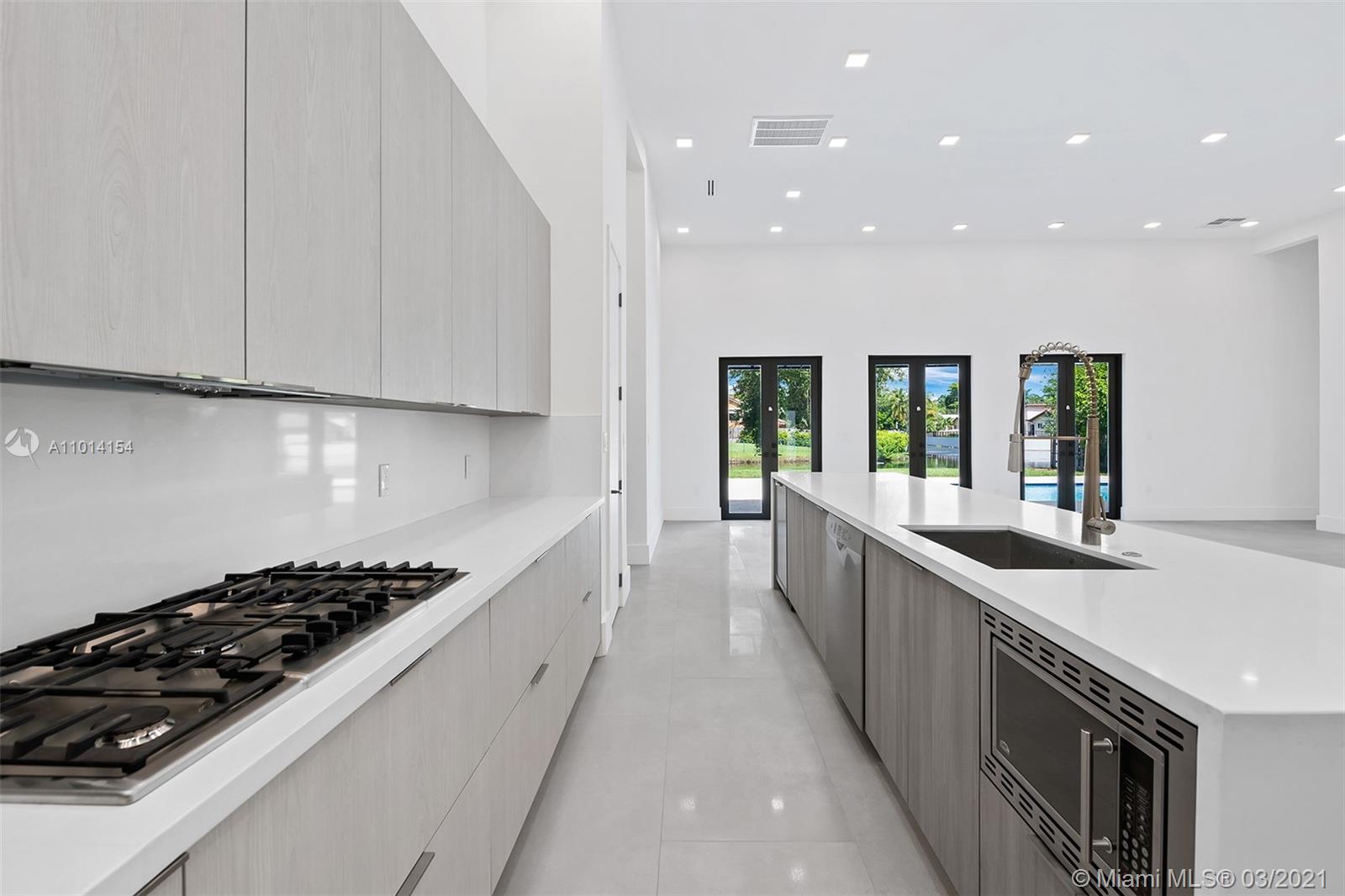 Ultra-Modern Masterpiece, new construction waterfront home. This stunning residence features an open concept floorplan and boasts 6 oversized Bedrooms, 5 ensuite bathrooms and walk-in closets. Expansive master suite with huge walk-in closets, an oversized double rain shower and soaking tub. 14’ ceilings throughout. 48” rectified porcelain tiles throughout. Designer kitchen featuring quartz counters/backsplash, top of the line built-in, energy efficient Bosch stainless steel appliances, winecooler and gas cooktop. Hurricane Impact energy efficient windows/doors. LED lights throughout. Two energy efficient A/Cs, Linear diffusers. Oversized pool and covered area. Located on cue-de-sac in a private country club golf course community walking distance to temples/churches, in top school district.