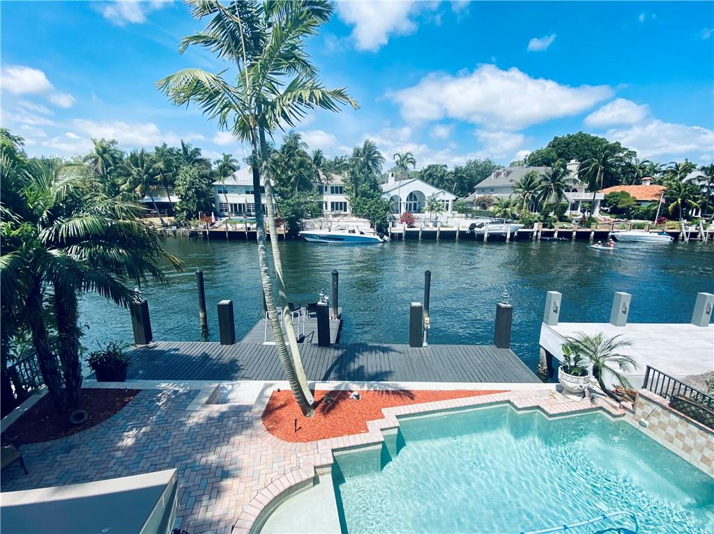 BEST VALUE UNDER $3 MILLION! $2.495. Remodeled. Many new features. Modern, open, flowing floor plan great for entertaining. Unique dockage: up to 2-3 40’ boats docked perpendicular on 160’ wide waterway. See photos. Large floating dock. Waterfront is 50’ setbacks only 5 feet. Most picturesque and WIDEST natural waterway in Las Olas. Old Florida “RIO NAVARRO” lined with mature live oaks, connects historic Rio Barcelona & New River. Significant remodeling includes new roof 2020, new AC, new floors, master bathroom. Finished garage, lift (optional). & opens to beautiful pool & backyard. Optional 4th bedroom perfect for office. Large loft makes great exercise area or office. AKA “Navarro Isle”, quiet street of new homes, offers closest proximity to Las Olas restaurants & nightlife.