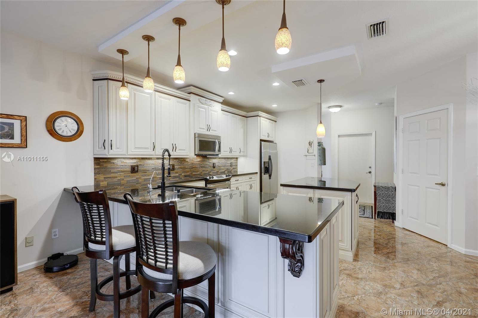 Large and spacious private oasis! This CORNER 3 bedroom, 2.5 bath, 2 car garage townhome in an intimate gated community a few steps away from Las Olas features a stunning remodeled kitchen opens to the living room and dining area. The relaxing space flows through the large double sliding doors to the outside where you’ll find a custom-made wood pergola, tiled patio, and synthetic turfed private yard. A perfect place to relax after a long day. Upstairs are your 2 guest bedrooms and a HUGE primary bedroom with bathroom and walk-in closets. As a bonus, there is a Aquasana whole house water filtration system good for 1 million gallons of water installed June 2020 and the smoke detectors are also CO2 detectors. This property is just 5 minutes from the airport and I-95.
