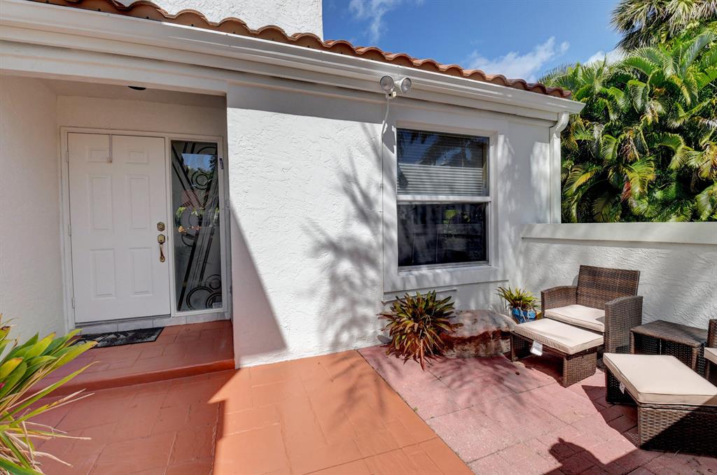 Welcome to the highly desired Boca Country Club's Candlewood community. Enter this rare 2-story corner townhome through an intimate private patio. High ceilings, skylights and impact windows boast tons of natural light throughout. Eat in kitchen with granite countertops and new SS LG appliances leads to the large dining/living area. New tile flooring. Large master suite, laundry and updated 1/2 bath complete the 1st floor while 2 bedrooms, 1 full bath & a spacious loft occupy the 2nd floor. Outdoor screened in wrap-a-round patio is perfect for entertaining or just relaxing. Close to the beach, restaurants, entertainment and so much more.