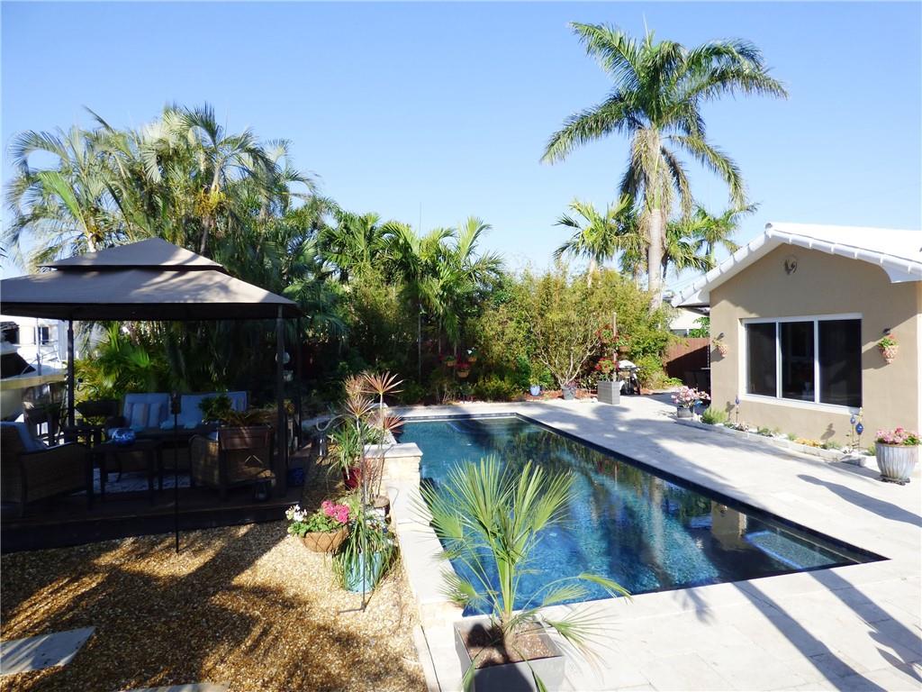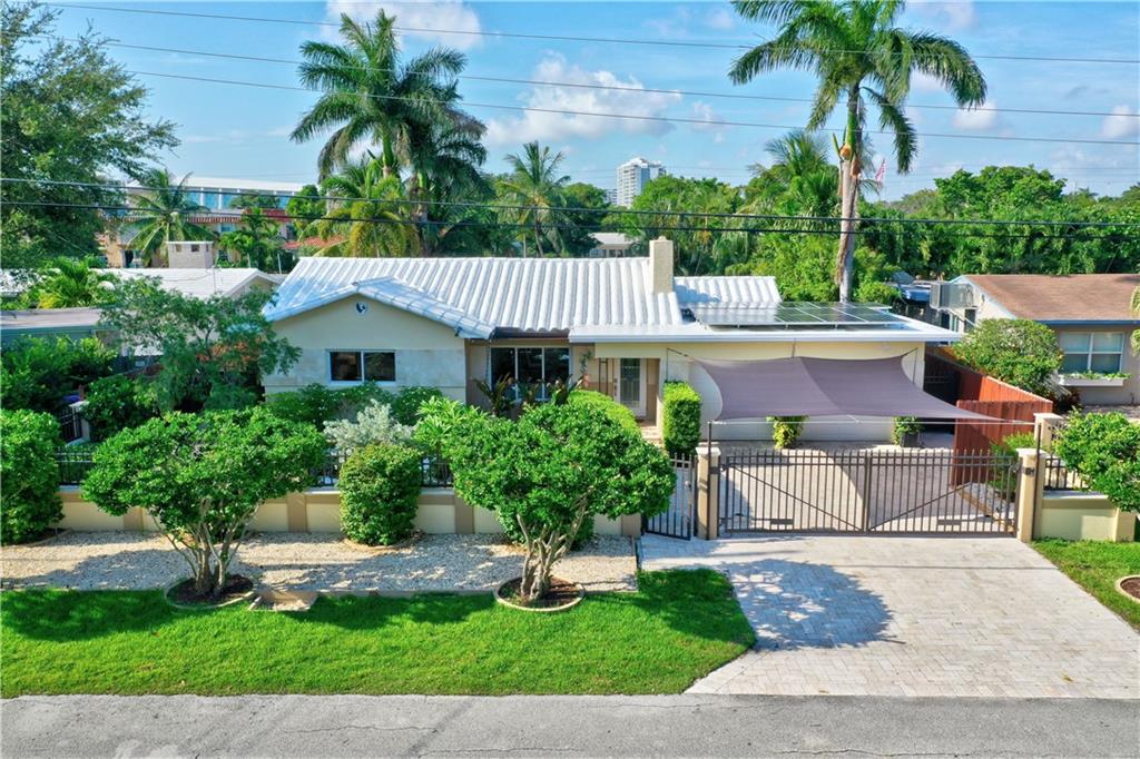 THE ONLY OCEAN ACCESS HOME on the market in Fort Lauderdale under 1M! Resort like cottage w/ 70' on H2o (1 FB - 10.2" Clearance) is located in Central East Fort Lauderdale. Open concept living space is beautifully updated with Impact Windows & Doors, $32,000+ Solar System, Mosquito Nix System, Electrical Panel Upgraded, Travertine Deck and Driveway, Motorized Security Gate, Electric Charging Station, Heated Salt H2o Pool & much more! The kitchen is professionally configured & has all the most accomplished chef could hope! Gardens are lushly landscaped w/ colorful plants, succulents & flowers. Relax in the delightful waterfront gazebo enjoying the relaxing SE waterfront views on this extra wide canal & enjoy the cool east side breezes coming up from the Intracoastal only a few lots east.
