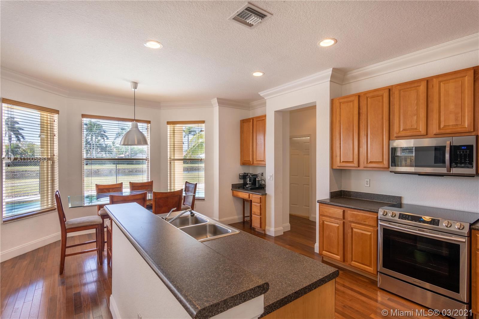 Fantastic two story 5 bedroom house plus a Bonus room with it's own private entrance; can be converted into school room space, home office or in-law suite. Property has a private pool on canal perfect for watching sunsets. Original owner, real Oak Wood flooring throughout the house. This GL home was purchased pre-construction with the full upgrade package. First floor has 1 full bedroom & bath, Kitchen is open concept with brand new SS appliances purchased in 2020, wood cabinetry through out & a great breakfast area overlooking the pool & canal. On the second floor you will find the Grand Master Suite with beautiful tray ceilings & Sitting area, His & Hers bathroom, shower & closets! Upstairs Washer & Dryer. 2 Car Garage. Centrally located to Turnpike (1 mile), 836 (2 Mile) & I75 (4 miles)