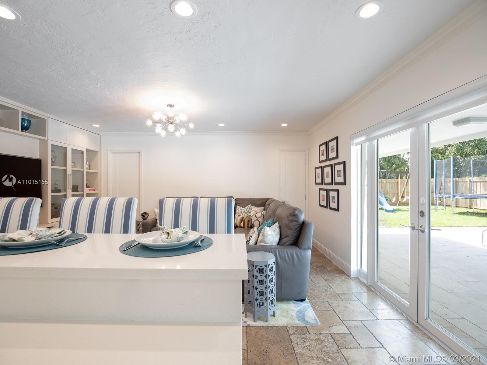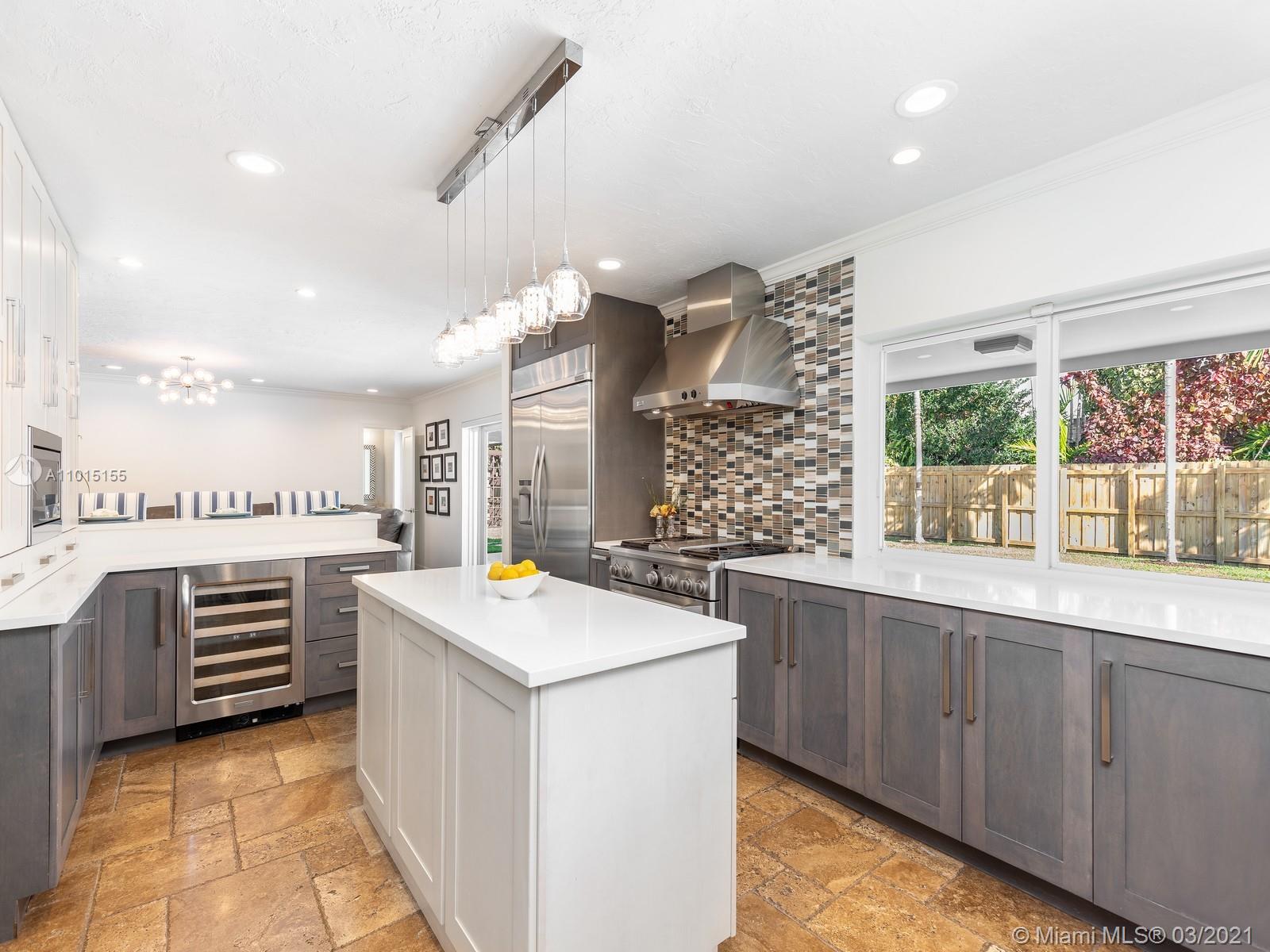 A timeless and renovated residence on a beautiful North Pinecrest street - this special home offers superb quality and modern features: recent new roof, impact glass windows - doors, updated plumbing, ACs and a custom gas kitchen. This 4br/3bath floor plan is the ideal layout for a family and offers a home office with custom built-ins. The kitchen windows open to a large covered terrace and a heated saline pool area where many afternoons will be enjoyed after bike rides on the low traffic street. Surround yourself with quality time by walking to nearby Pinecrest parks, tennis center, shopping and the adjacent expressways are perfect for those that commute. Home can be purchased with most of the furniture (separate purchase/request prices), making it a turn-key opportunity!