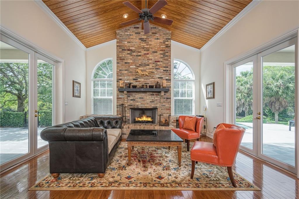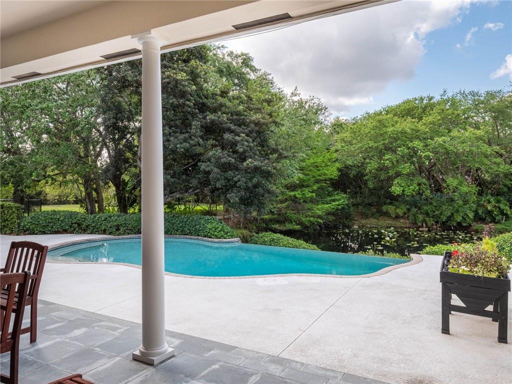 Exquisite Southern Home w/Wrap-Around Porches on 2.5-Acre Private Estate in Sought-after Southwest Ranches! Warm & inviting curb appeal the moment you set your eyes upon this beautiful home set in a storybook garden array of Oaks/Pine trees, fruit trees & butterfly vegetation. Impeccably maintained spacious interior featuring shimmering wall-to-wall wood floors, accented by the finest of finishes in white panel doors, crown molding & touches of wainscot throughout. Picturesque views of the botanical gardens from every impact window & French door adorning this masterpiece home. Showcase Great Room w/tongue & groove wood ceiling & stone wood burning fireplace is the perfect setting for family gatherings overlooking the infinity pool w/waterfall, serene pond views & grabble walking path.
