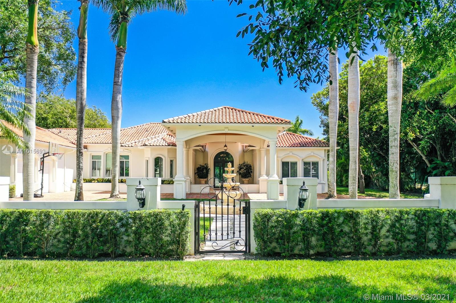 Lovely North Pinecrest property on a builders acre corner lot, in a calm one way street. The 5 bedroom house offers bright and spacious rooms, as well as high ceilings. The floors are marble throughout the common areas, and solid wood in the bedrooms. The open plan kitchen was just remodeled - and the wine cellar can store 1000 bottles! The windows are all impact and look out to a beautiful and spacious manicured back yard. The private outside is perfect for entertaining. The trees and fountain give the property a peaceful sanctuary feel. The fully gated property is also equipped with a generator.