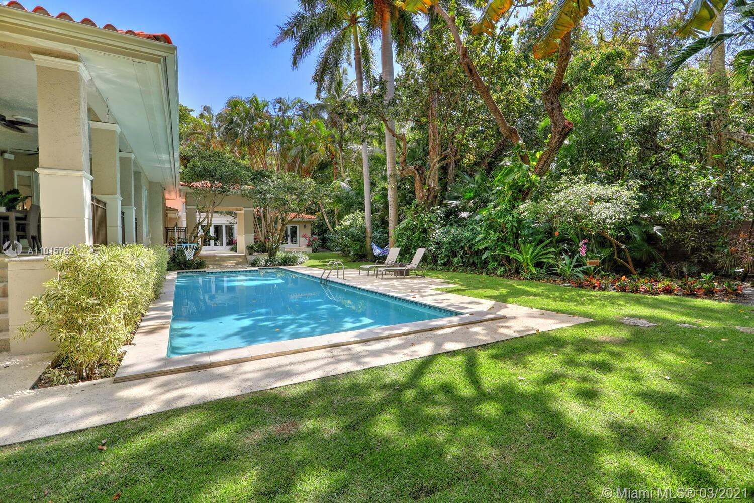 Spectacular walled & gated estate, just a short walk to bayfront parks & marinas and close to the Grove village. Oversized, 20,000 SF of magical gardens surround the home w/100’s of native & exotic plant species set under mature trees, 12+ palm varieties & assorted fruit trees. Extensive renovations by Errez Design Studio w/attention to every detail including stunning kitchen w/ custom cabinetry, top-of-the-line appliances & center island. Light-filled rooms feature high ceilings, wood flooring & an abundance of large windows creating an indoor/outdoor ambiance throughout. The outdoor spaces offer the ultimate private retreat w/ winding coral rock pathways, kids play area, workout area, covered terraces, tropical pool & gazebo w/summer kitchen. Just minutes to Brickell, MIA & the Beaches.