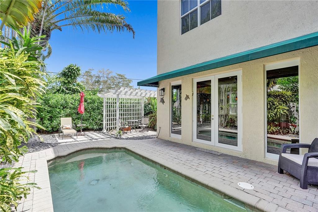 Fantastic tri-level townhome in the heart of Coral Ridge. This 3 bedroom 3.5 bath corner unit townhome boasts an oversized rooftop terrace and 2 car garage. Impact windows and doors. Bright and open first floor with gourmet kitchen featuring granite countertops and stainless steel appliances. All bedrooms located on the second level. Huge master suite features private patio, walk-in closet and bathroom with dual sinks and separate tub and shower. Third floor with loft area and full bath. Large rooftop terrace with beautiful city and water views. Lushly landscaped backyard with pool and patio space. Located in Bayview Elementary school district. No HOA.