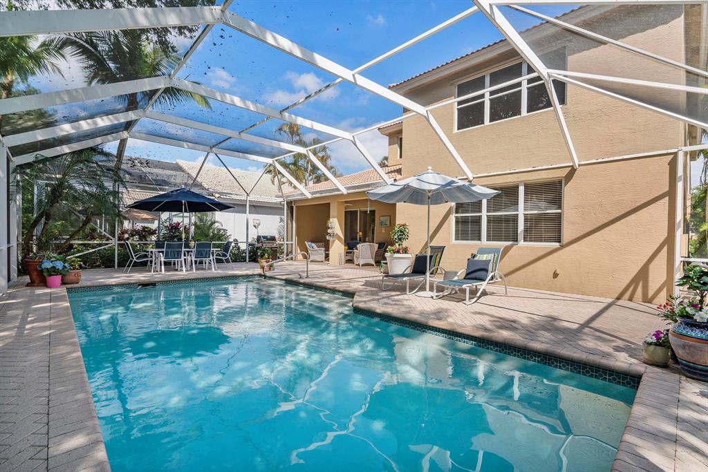 Rarely available 5 bed 3.5 bath home in a desirable Boca Raton Gated community. New Luxury Vinyl Flooring throughout main living space. Oversized master bedroom with large walk in closet all on main floor. White kitchen with granite counters and stainless appliances Kitchen with open great room looks out on your private yard and beautiful pool with a very spacious, oversized patio. Patio is completely screened in. Upstairs boasts 4 large bedrooms and 2 full bathrooms. Newly painted exterior, landscaping and great curb appeal. A-rated Boca schools. Can even walk or bike to Elementary and middle school. Manned Gated community, clubhouse, fitness center, tennis, basketball, community resort style pool.