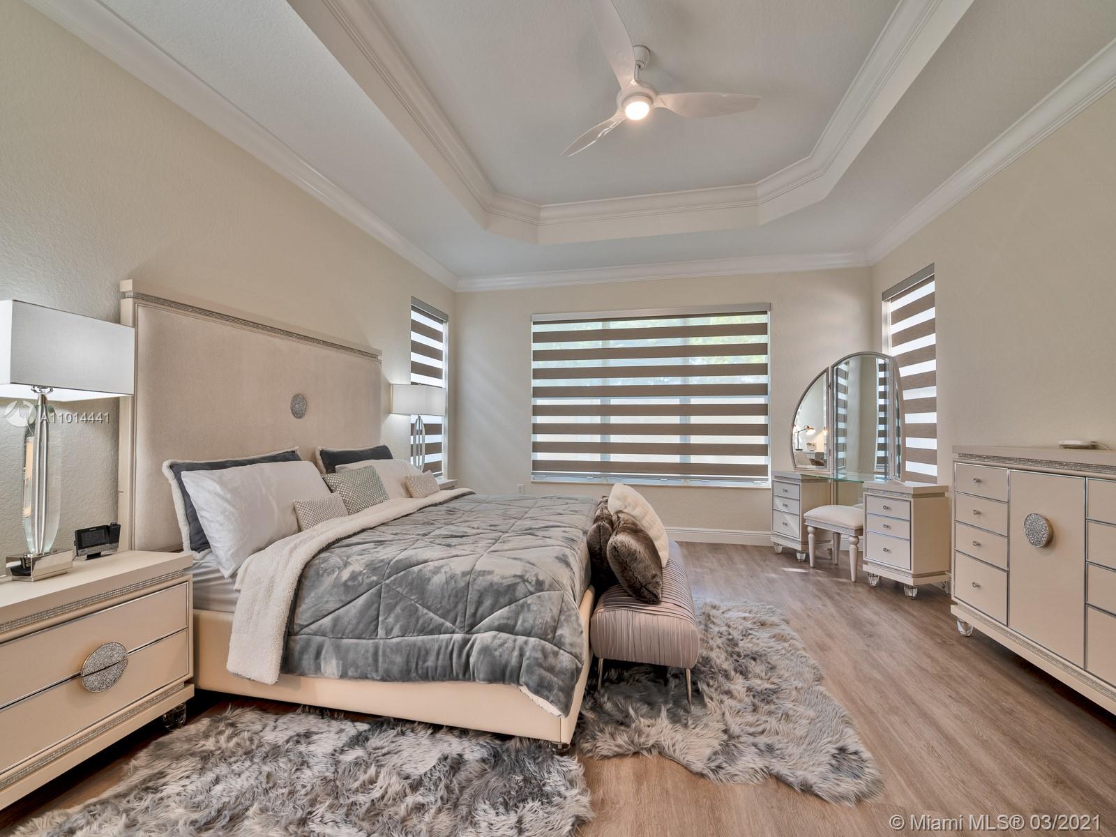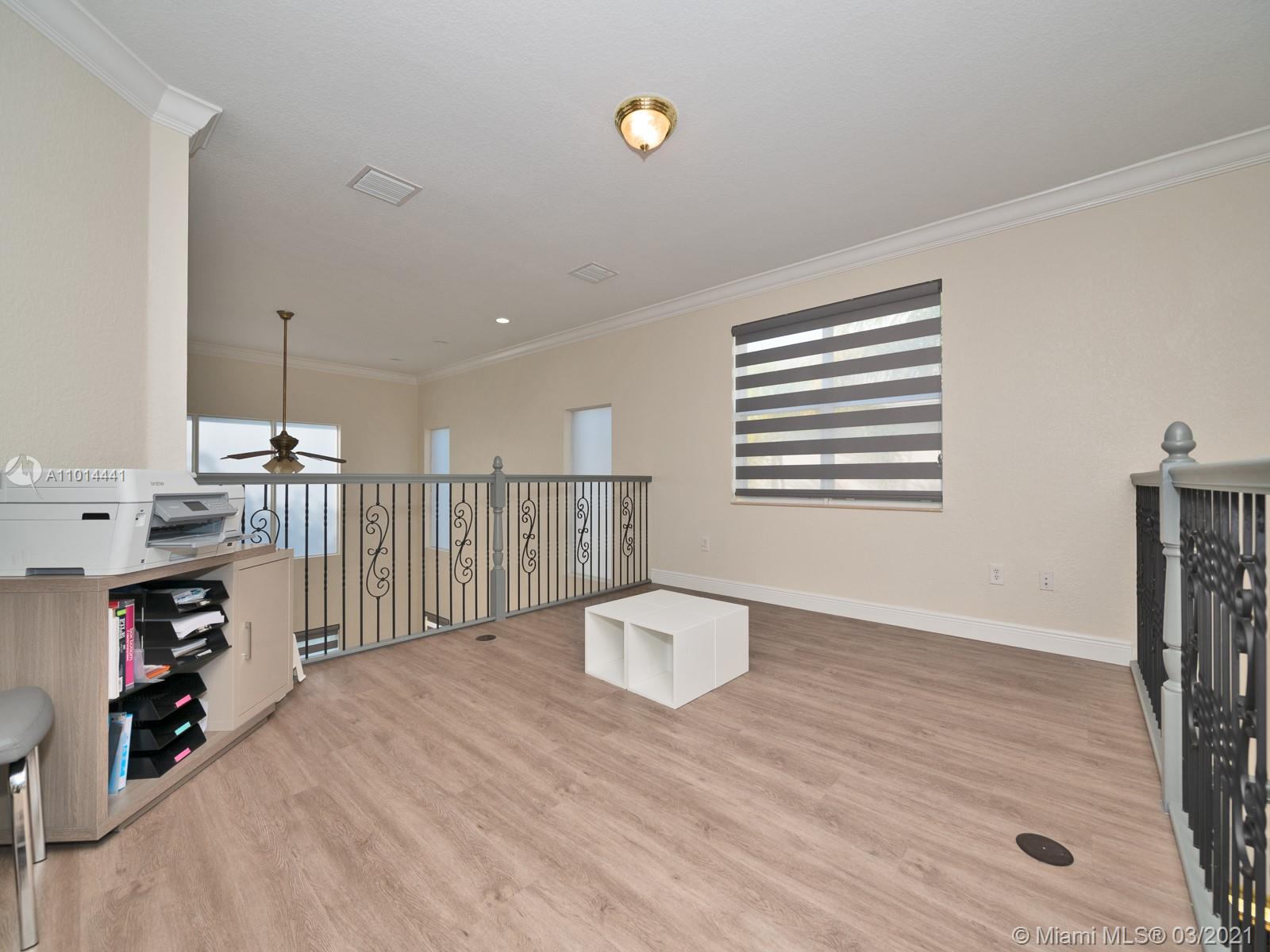 Gorgeous semi-custom 2 story home in Sunset Falls. 5 bedrooms plus loft, 3.5 bath , 3 car garage. Home has nice upgrades and is very well maintained by the owners. Modern open floor plan with lots of sunlight and 22ft. vaulted ceilings. Neutral colors throught the home. Gourmet Kitchen with wood cabinets, stainless steel appliances, and granite countertops. Master suite located on the first floor with jacuzzi tub and separate shower, his and hers vanities, and large custom walk-in closet. Crown moldings, Iron & wooden staircase, Upgraded light fixtures and window blinds. Room for a pool. Accordion shutters. Sunset Falls community has 24 hrs guard gate security a very nice clubhouse, pool, tennis/basketball courts & 3 tot lots.