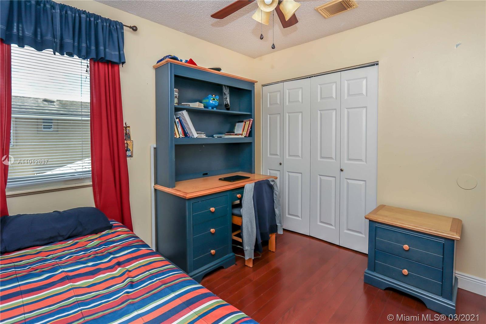 Beautifully updated 2 story home on a Cul De Sac is bright and spacious featuring 3 Bedrooms, 2.5 bath, 1 car garage and fenced in back yard. Beautifully Updated open concept Kitchen, SS appliances, new stove with Exhaust fan, Granite Countertops, updated bath in Master bedroom downstairs. 2 bedrooms& 1 updated Bath upstairs, 1/2 bath downstairs. Real Cherry Oak hard wood floor on stairs. Tile throughout. Impact garage door, Impact windows upstairs, and impact sliding glass door downstairs + hurricane panels downstairs, 2020 Roof, A/C only 5 years old, Termite Treatment 2 years ago. Centrally located Minutes to I75 and 595. Easy Homeowners association no approval, no pet restrictions. Low maintenance fee $136mo.