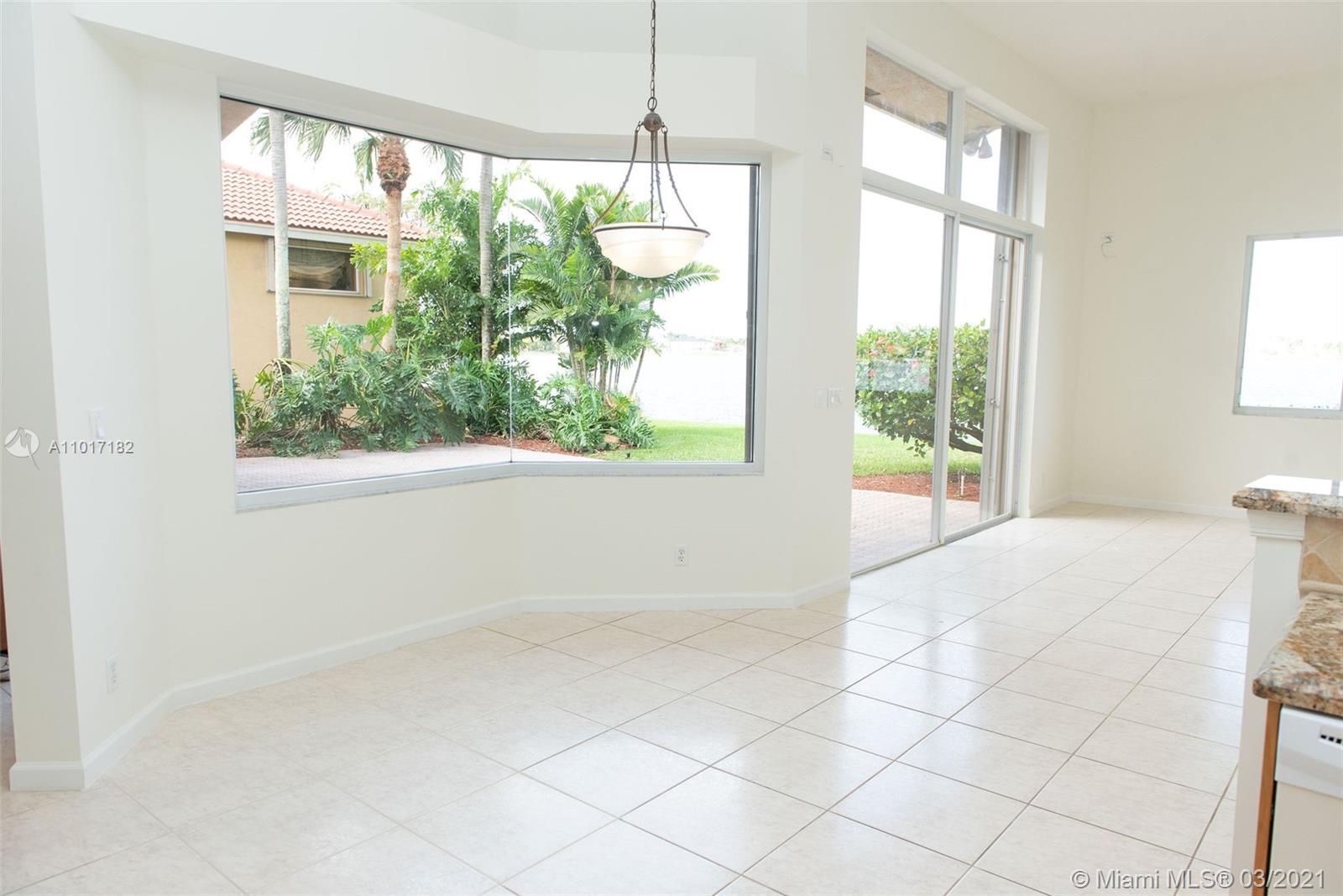 Beautiful single story home with a spectacular lake view. This home is nestled on one of the the largest lakes in west Miramar with water views that are unobstructed. In the beautiful community of Sunset Lakes on models row, this home is a 4/3, immaculately kept with a brand new AC, accordion shutters, freshly painted interior with new carpet in all the bedrooms. Community features include an Olympic size pool, clubhouse with gym, playground, and a 24 hour guarded visitors entrance.