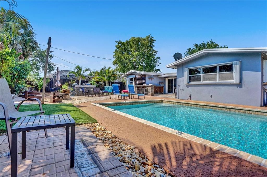Gorgeous over-sized corner lot located in the heart of Boca Raton neighborhood. This home is a 3 Bed | 2 bath with updates throughout the home. From the tile floors to the kitchen and bathrooms. The kitchen has granite tops, stainless steel appliances, and a sidebar with a wine cooler. oversized washer/dryer, Some impact windows, sliding doors, hurricane shutters along plantation shutters throughout. Huge fully fenced backyard, enjoy the oversized pool, fire pit, gas BBQ, egg burner. Along with artificial grass on both sides of the property, space for boat or RV parking. This home sits next to"A" RATED schools, FAU is less than 2 miles. Next to Mizner park, beaches, and golf courses. This is a MUST SEE.