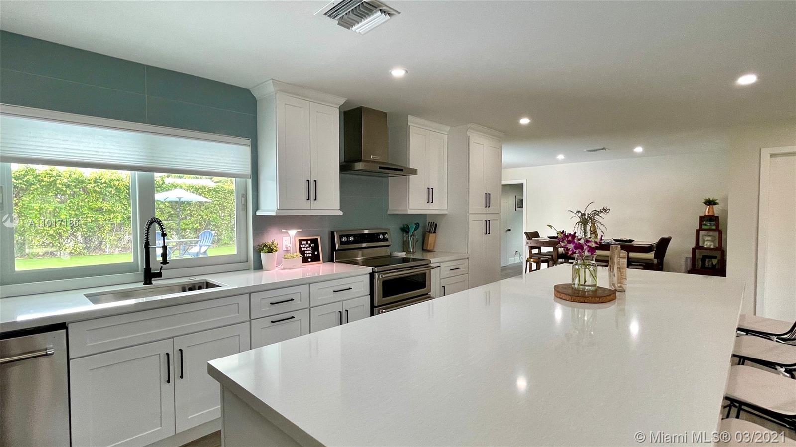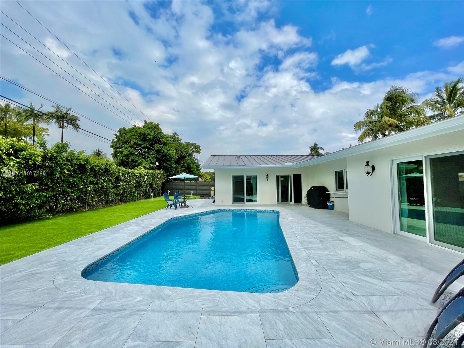 This home is truly a one-in a lifetime opportunity! This gem is a 4 bed 2 bath, 2 car garage in Imperial Point/Coral Highlands neighborhood. New Metal roof, new plumbing, new A/C and ducts, new electrical, new impact windows and doors, new salt water pool with new pump system and lighting; marble pavers, high end artificial grass with cool grade infill and a custom golf practice putting green make for a low maintenance backyard. Quartz counters with matching premium Kitchen-Aid appliances and a huge 10ft long island make this kitchen perfect for entertaining. The main area is open concept, all four bedrooms are spaced well apart. Close to great schools, beach, airport, food and shopping, highway, parks and entertainment. Amazing home perfectly located in a highly sought after neighborhood.