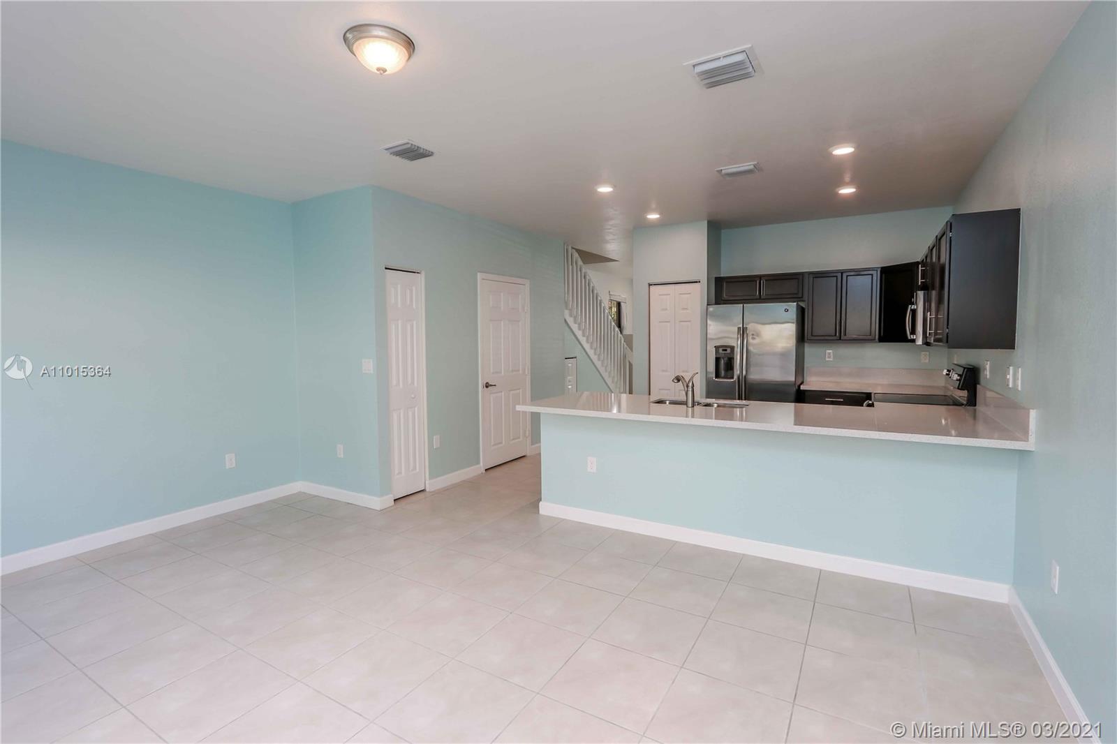 Gorgeous 3-bedroom, 2-full Bath, 1-half Bath, and two assigned parking spaces! Gourmet kitchen with granite counter tops, new stainless-steel appliances, pantry and hardwood kitchen cabinets! Porcelain floor downstairs and carpet upstairs, washer/dryer, water heater, tile showers, glass door in master bedroom bathroom, and fence in backyard! In the gated new community, Bonterra. Brand new Clubhouse with community pool with splash pad for kids, full gym, children playground, entire community family friendly, multiple visitor’s parking spaces! Close to supermarkets, gas station, schools and close to the turnpike, I-75 and Palmetto Expressway!