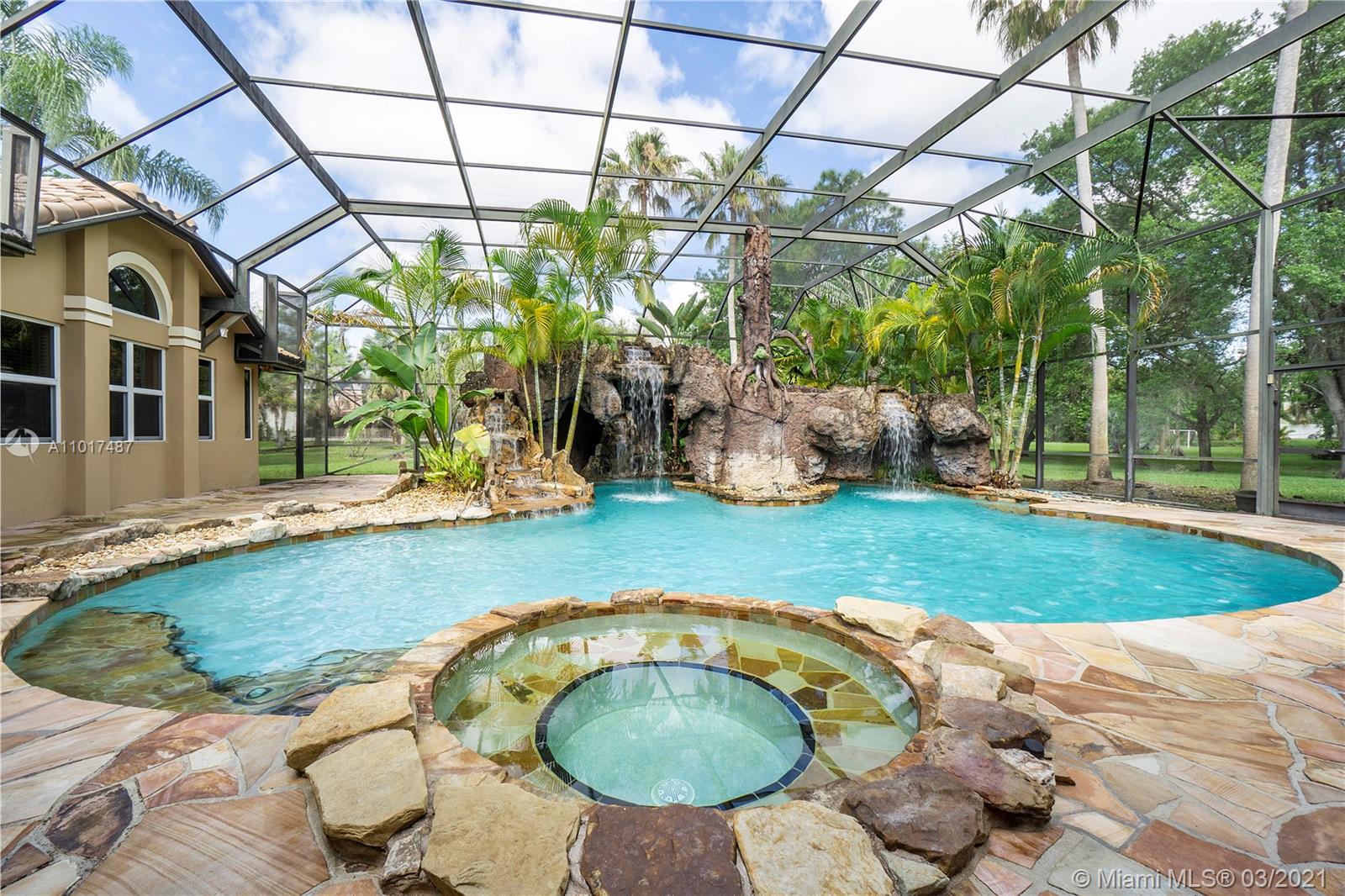 SPECTACULAR ESTATE HOME SITUATED ON 1+ ACRE IN THE PRESTIGIOUS WHISPERING WOODS. THIS TROPICAL GROTTO POOL HOME FEATURES OVER 7800 SQFT 1 STORY, 5+ BEDS 6+ BATHS, THEATER ROOM, SAUNA, 2 PLAYROOMS, OFFICE SPACE, CIRCULAR PAVER DRIVEWAY, VAULTED CEILINGS W/ RECESSED LIGHTS, FORMAL DINING/LIVING ROOM, FAMILY ROOM, EAT IN KITCHEN W/ GRANITE, WALL OVEN AND COOKTOP STOVE, CABANA BATHROOM, SPACIOUS MASTER SUITE WITH HIS/HER WALK IN CLOSET, DUAL SINKS AND WALK IN SHOWER.