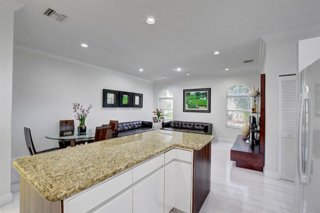 This is a house to call HOME. Walk in and feel a sense of space and serenity. Currently a spacious 2 story 3 Bedroom plus office (can easily be converted back to 4th bedrooms) Enter into very large living/dining room with 25' ceilings. Lake view and filled with sunlight. Master bedroom on main level also facing the lake. Eat in kitchen (white with granite counter tops) opens to family room. There is new flooring giving a clean contemporary look. upstairs are 2 large bedrooms, 1 ensuite bath and a 2nd full bath. Office with window and closet(was 4th bedroom). * Very special lot and 3 car garage. All homes in community scheduled to be repainted. LOCATED IN BROKEN SOUND COUNTRY CLUB WHICH HAS MANDATORY MEMBERSHIP. BUYER TO PAY NON REFUNDABLE CAPITAL CONTRIBUTION AT CLOSING.