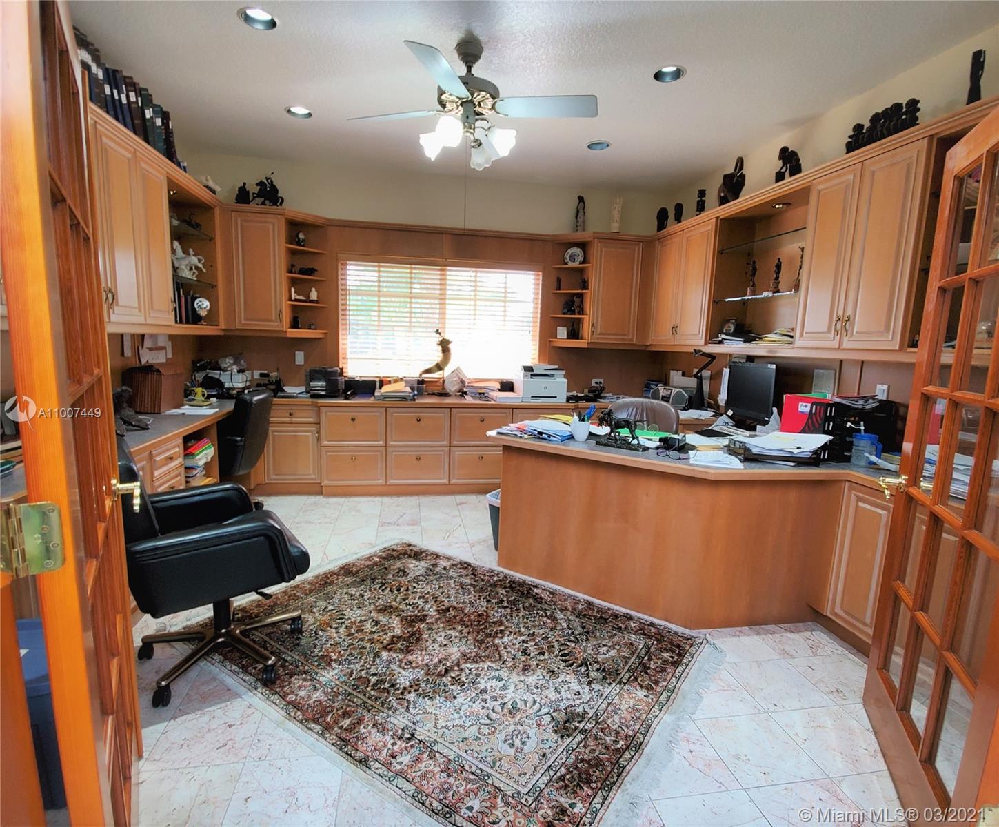 This is a one of a kind home where no expense has been spared and meticulous attention to detail, for a buyer with decerning taste. Airy 9 ft. ceilings, 130 Sq. Ft. enclosed Atrium with waterfall and greenery pool, Brick fireplace, Sub-Zero Fridge and Freezer, Custom built office with two work stations and filing cabinets and plenty of storage, Huricane windows and doors including garage door, 1900 Sq. Ft. screen enclosed Lania, custom built-in closets thoughout, Plantation shutters throughout, Custom kitchen with slide-out drawers all dressed in beautiful Azure/Black granite. Sub-Zero Side by Side Two Kitchen Aid dishwashers.Fantastic gardens with mango, avacado, and banana trees. Marble floors, solid wood doors, and many other features too numerous for this space.