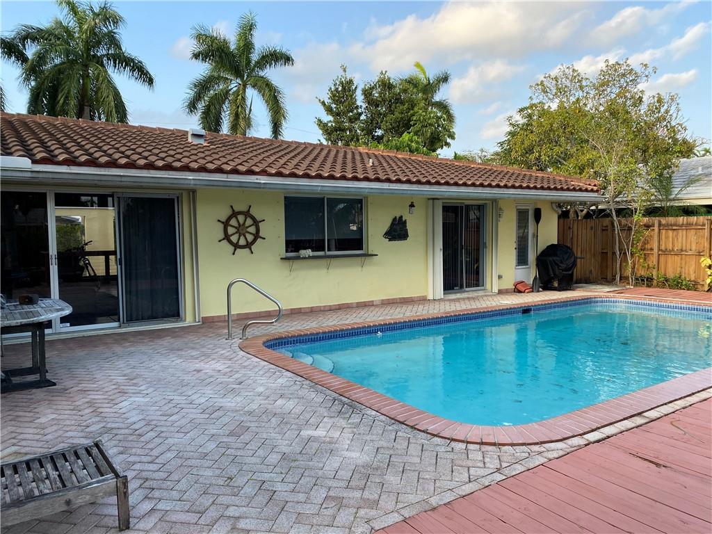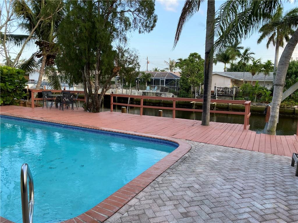 Fabulous and spacious 3 bed/3 full bath waterfront, ocean access, pool home located in wonderful Coral Ridge Isles neighborhood. Home features large eat-in kitchen with granite countertop and center island and overlooks pool and canal. Ceramic tile throughout the house. Large master bedroom with pool view, large walk-in closet and cabana bathroom. Garage plus a driveway big enough for 4 extra cars. Separate laundry room. An additional small office with storage space. Roof is less than 10 years old. Perfect home to entertain and enjoy family life. Centrally located close to shops, restaurants, public and some of the best private schools. Only 2.8 miles from the beach...or just sit outside on the patio and deck and enjoy the breezes and beautiful afternoon sunsets.