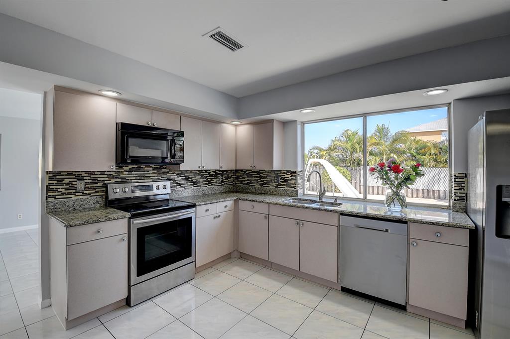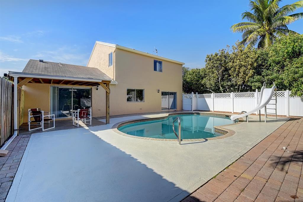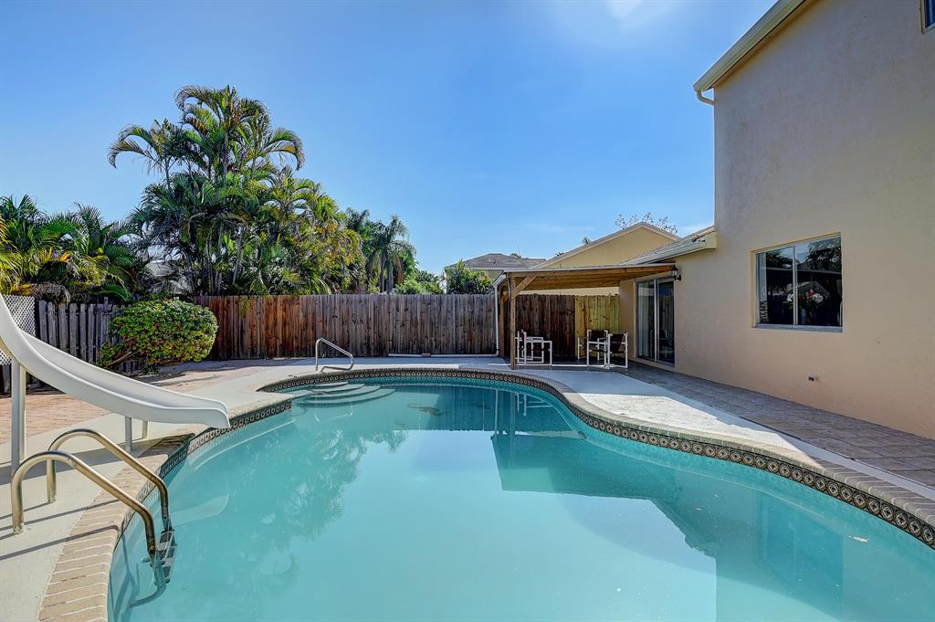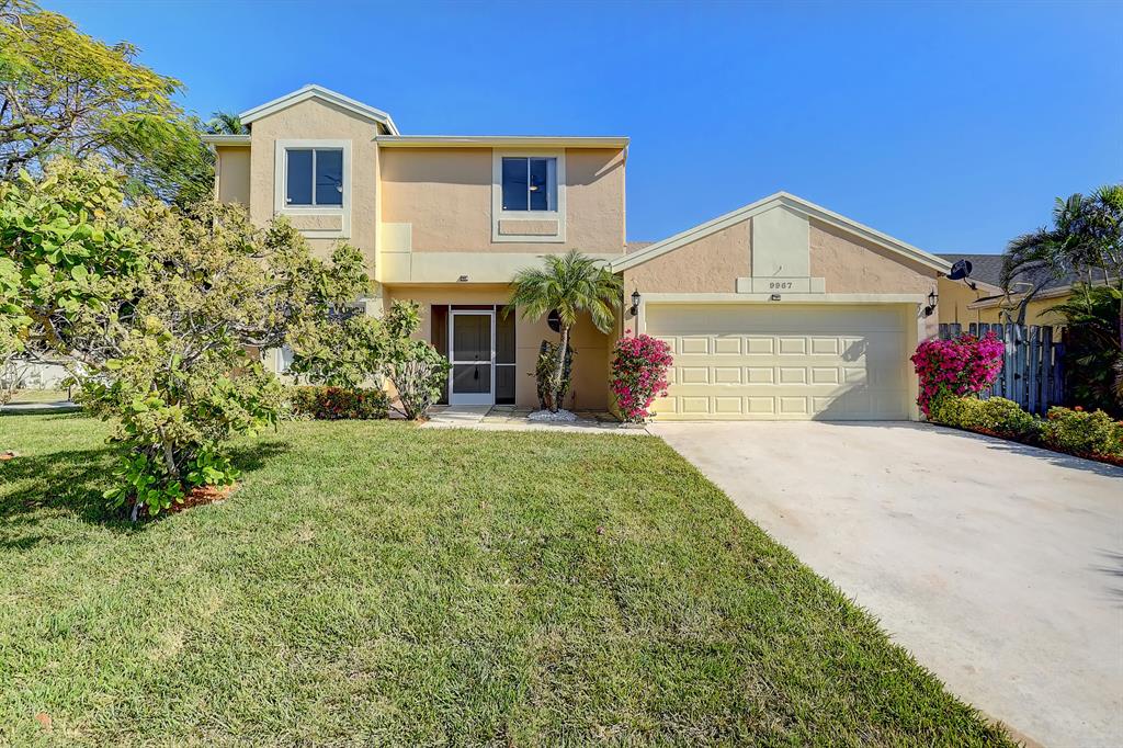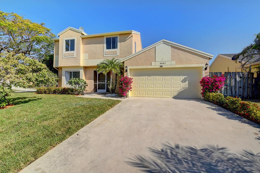 Welcome to the community of Boca Landings in Boca Raton. This beautifully updated two story, pool home on an oversized secluded corner lot with lush landscaping and plenty of trees. The home is approximately 1,843 square feet with formal living, dining, kitchen with stainless steel appliances, granite countertops, tile backsplash, with direct view to the pool, and a family room. With 3 bedrooms and 2 1/2 baths. A very spacious Master bedroom with walk in closet. Master bath with dual vanities and roman tub. The downstairs has tile floors, and the upstairs is wood-like floors. This lovely home will not last.Community features pool, playground, tennis, racquet ball and basketball.