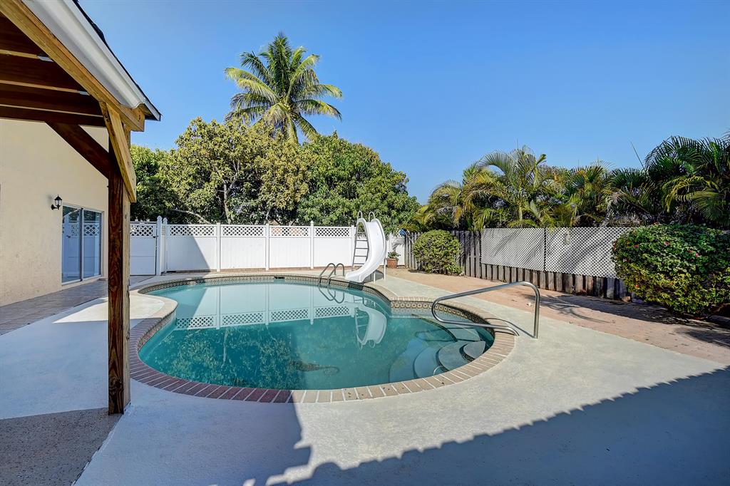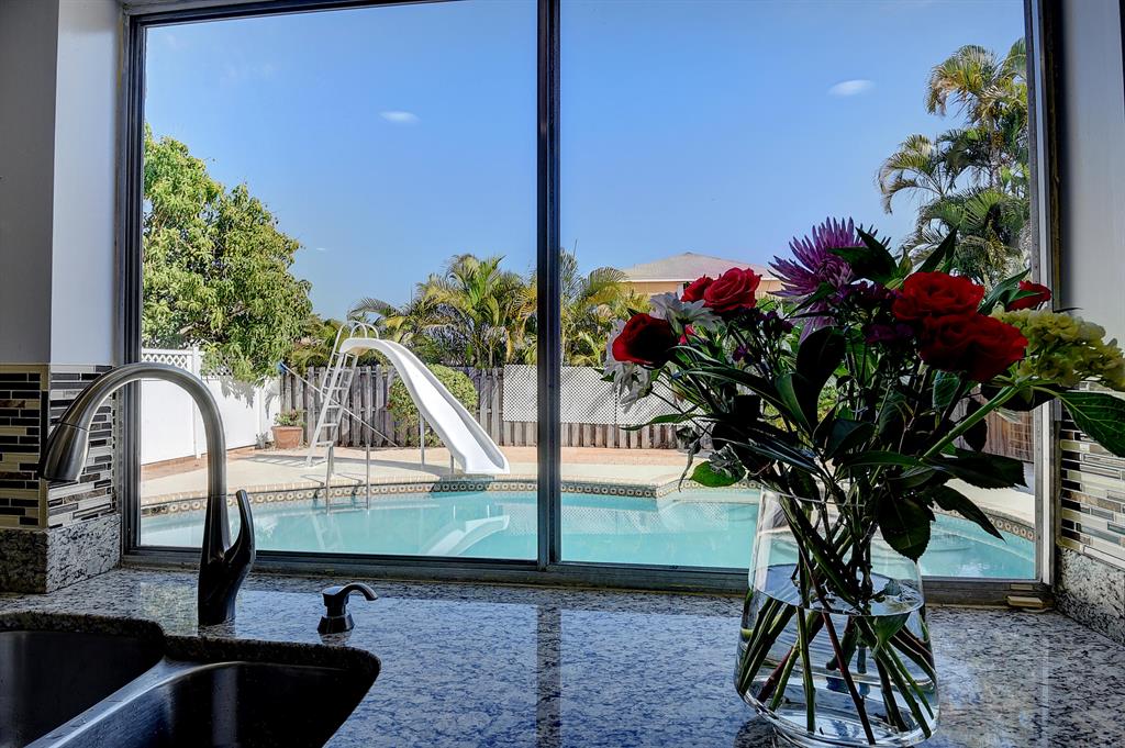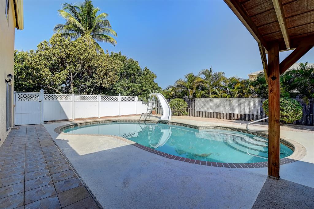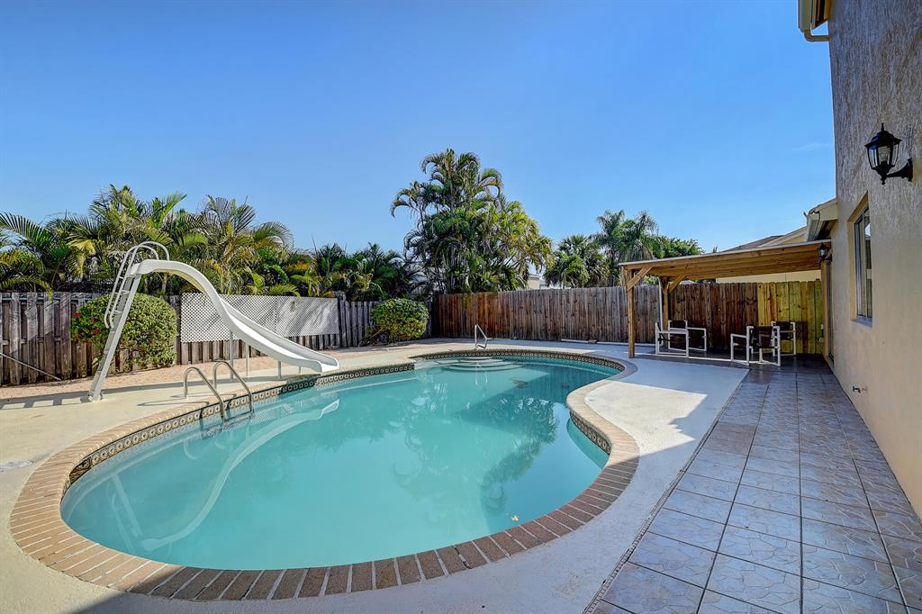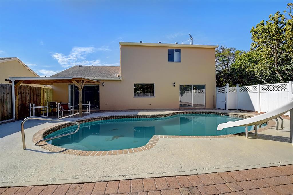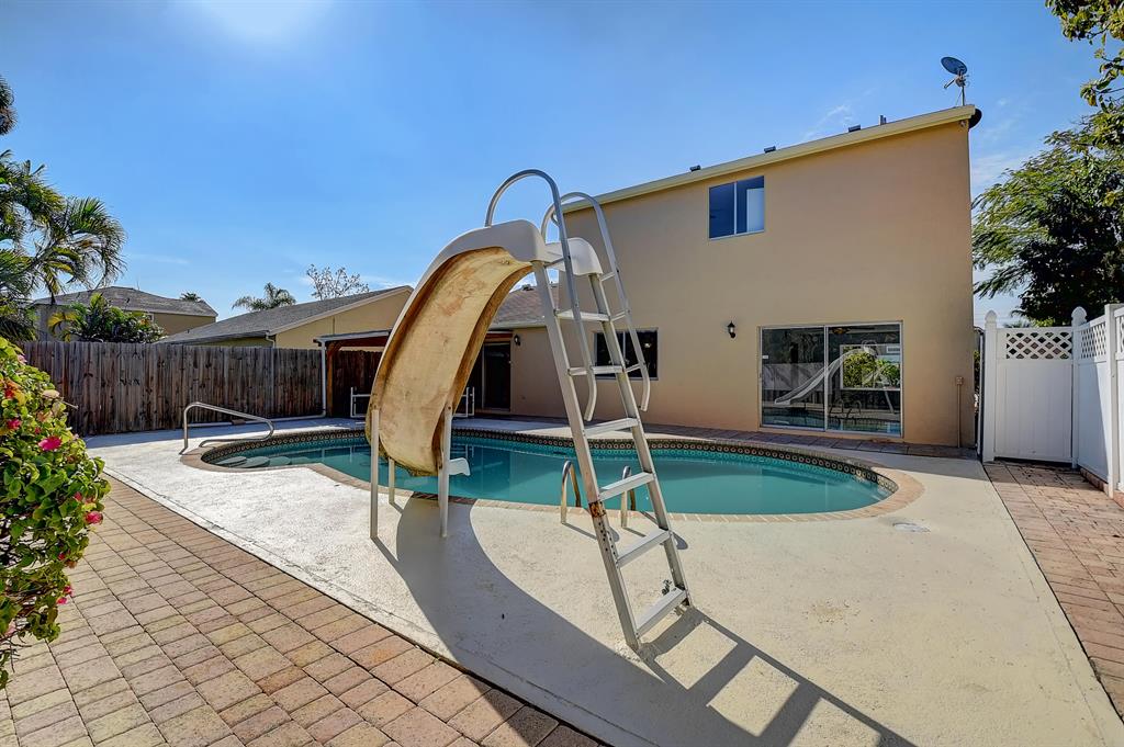 Welcome to the community of Boca Landings in Boca Raton. This beautifully updated two story, pool home on an oversized secluded corner lot with lush landscaping and plenty of trees. The home is approximately 1,843 square feet with formal living, dining, kitchen with stainless steel appliances, granite countertops, tile backsplash, with direct view to the pool, and a family room. With 3 bedrooms and 2 1/2 baths. A very spacious Master bedroom with walk in closet. Master bath with dual vanities and roman tub. The downstairs has tile floors, and the upstairs is wood-like floors. This lovely home will not last.Community features pool, playground, tennis, racquet ball and basketball.