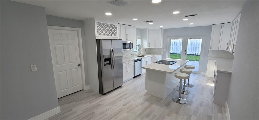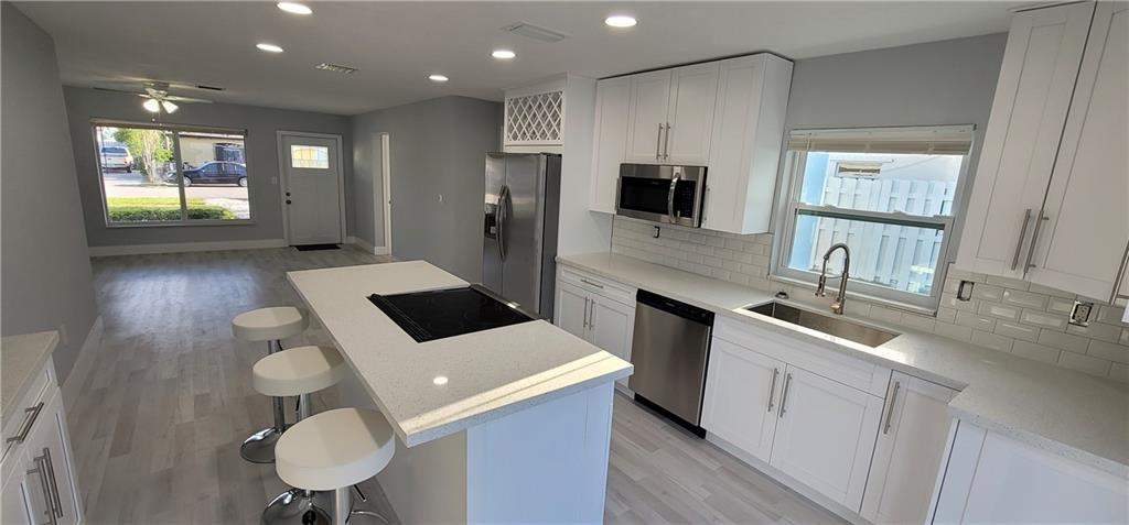 Come see this Fully Remodeled Home in the Heart of Riverland. New Hurricane Impact Windows, High End Kitchen with 42inch Cabinets, Center Island Cooktop Bar and Quartz Countertops. Brand New Stainless Steel Appliances. All New Waterproof Vinyl Flooring throughout. Two Fully remodeled bathrooms with Glass doors and a niche for bathroom essentials. The home has been freshly stucco textured on the outside, freshly painted inside and out. This home is very Modern, Bright and Cozy!. Freshly landscaped with new grass and plants. The backyard has plenty of room to add a pool. The home is located 5 minutes from I95 and Turnpike, and 5 minutes from the local boat dock with Ocean Access and no fixed bridges. Don't Miss out on this Gem!!!! It will not last in this market!