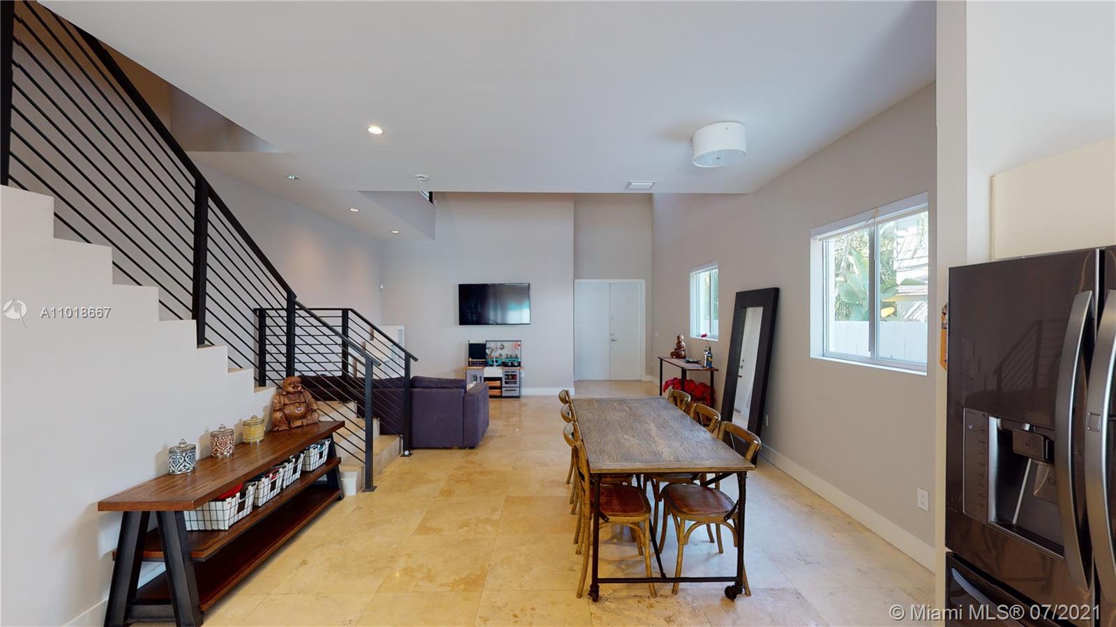 Well maintained modern town home in Coconut Grove. Travertine marble floors through out. 20 foot ceilings in the living room. Modern kitchen and bathroom cabinets. Private pool with no maintenance patio. Three bedrooms with ensuite bathrooms on the second floor. Master bedroom with walk in closet. Top of the line window treatments. Nice size master bath with dual sink, separate shower and tub. Gated parking for 2 cars plus one car garage. No maintenance fee! Units share the cost of annual master insurance policy (approximately $2,020 per unit per year). Walk to Downtown Coconut Grove, local grocery stores, Metrorail, parks, tennis courts and other amenities Coconut Grove has to offer. Not in a flood zone!! EZ to show with some notice.