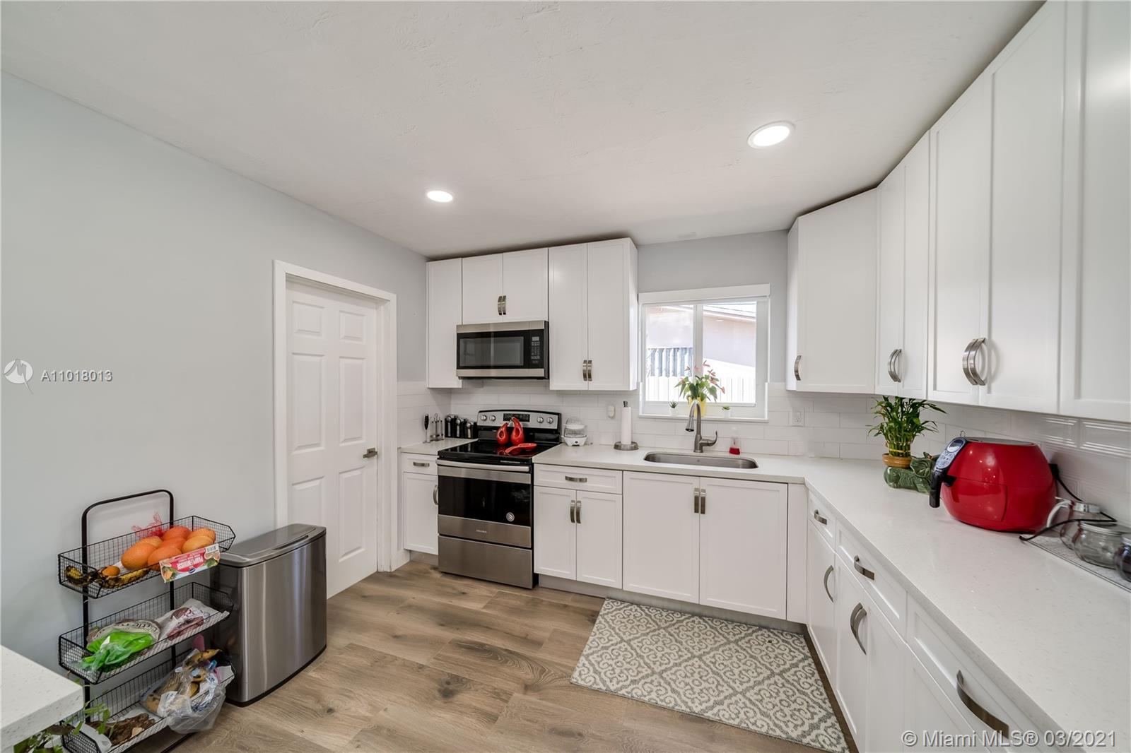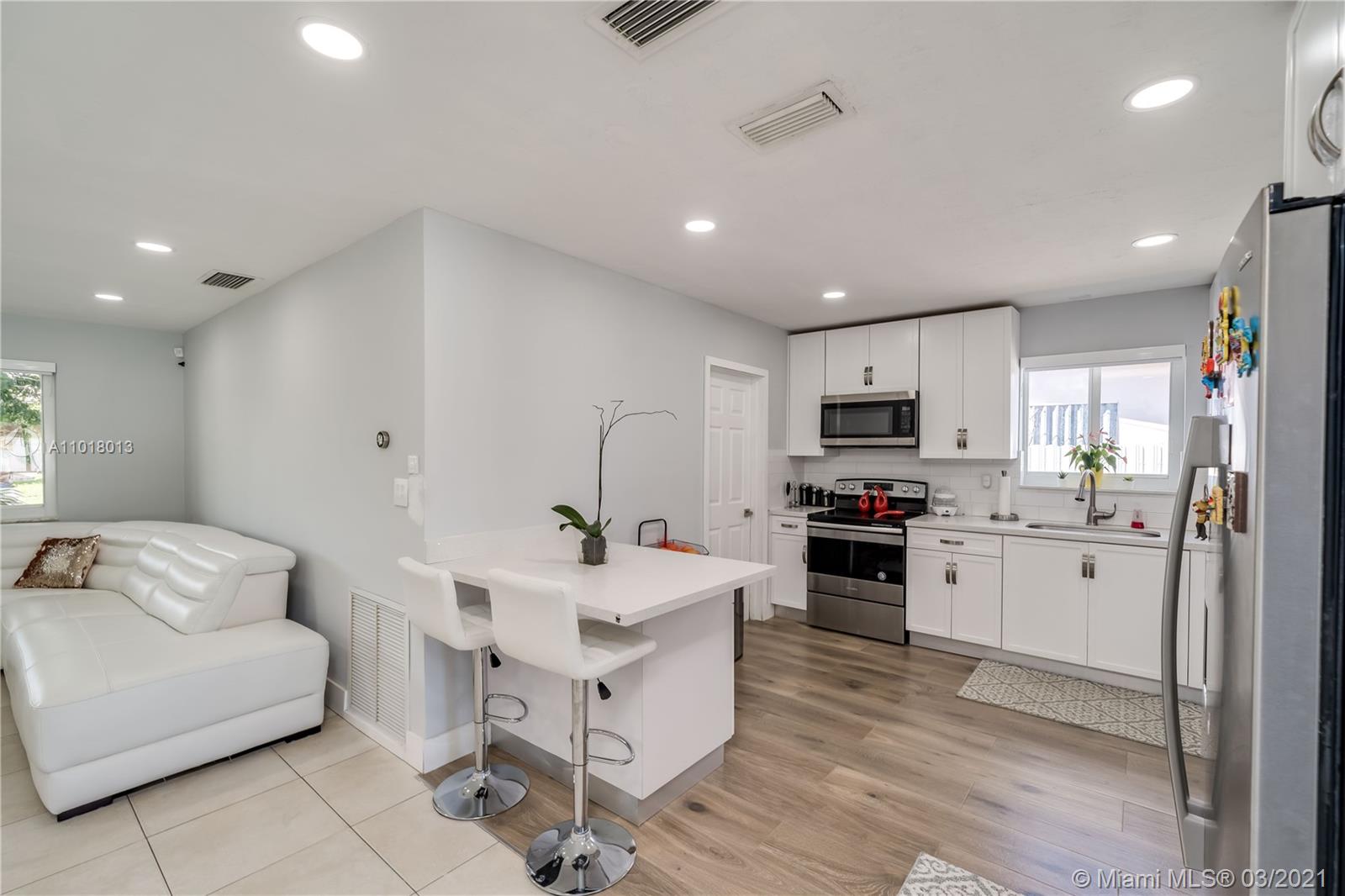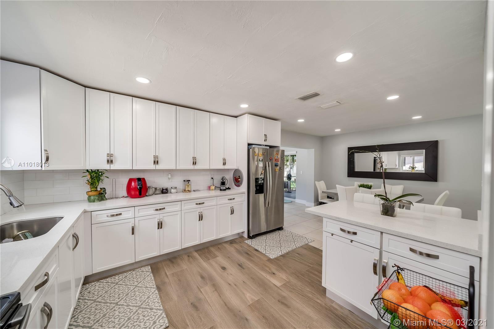 GREAT OPPORTUNITY TO OWN THIS BEAUTIFULLY, TOTALLY REMODELED HOME. NEW KITCHEN WITH QUARTZ COUNTER TOPS & SS APPLIANCES NEW BATHS AS WELL. TILE IN ALL AREAS EXCEPT BEDROOMS & KITCHEN. LAMINATE FLOOR IN KITCHEN. MAGNIFICENTLY POLISHED TERRAZZO FLOORS IN BEDROOMS. IMPACT WINDOWS & DOORS THRU OUT. LARGE YARD , GREAT FOR ENTERTAINING. CONVENIENT TO MAJOR HIGHWAYS, STORES , & RESTAURANTS. HURRY WONT LAST.