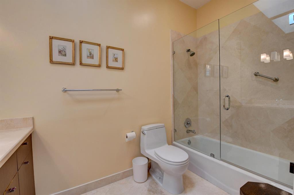 Beautiful one story SFH with almost 2,200 living sq ft, 3 bedrooms, 3 baths and 2 car garage. Oversized master suite with custom closets, master bath has dual sinks and a frameless shower. Updated open kitchen with granite countertops and ss appliances. Features include: skylights, volume and vaulted ceilings, upper windows allowing for more natural light, marble flooring throughout main living area, large screened patio with a built in hot tub. This home is located in the Hampton Court subdivision of The Polo Club. It also has a private community pool.