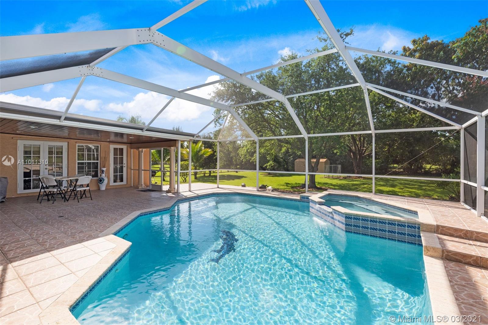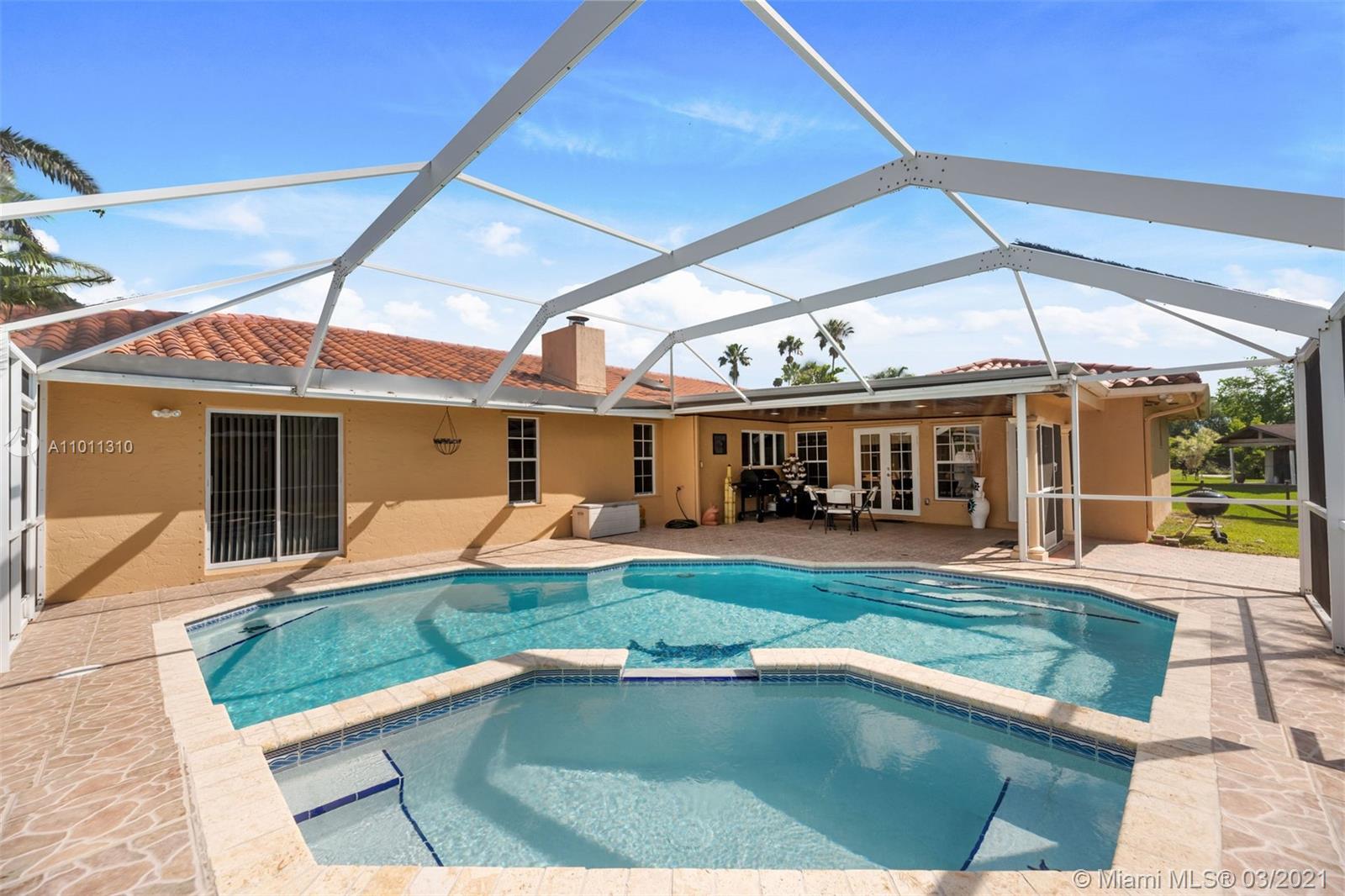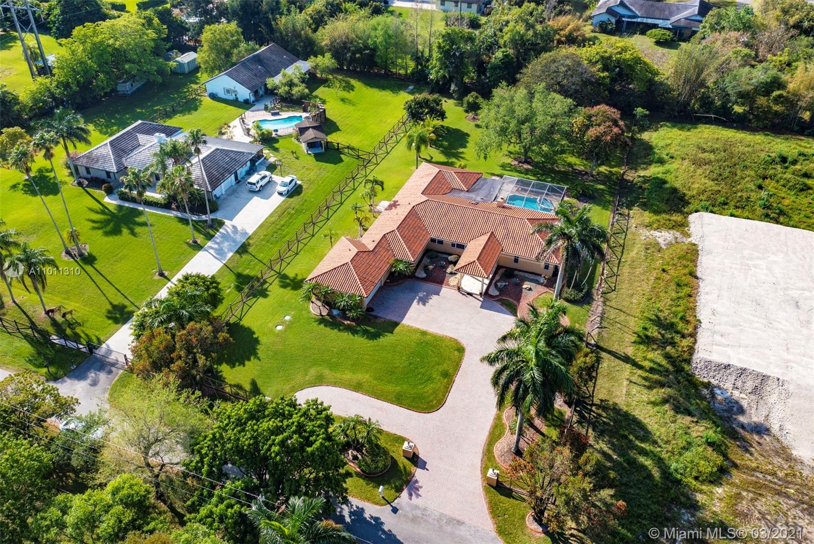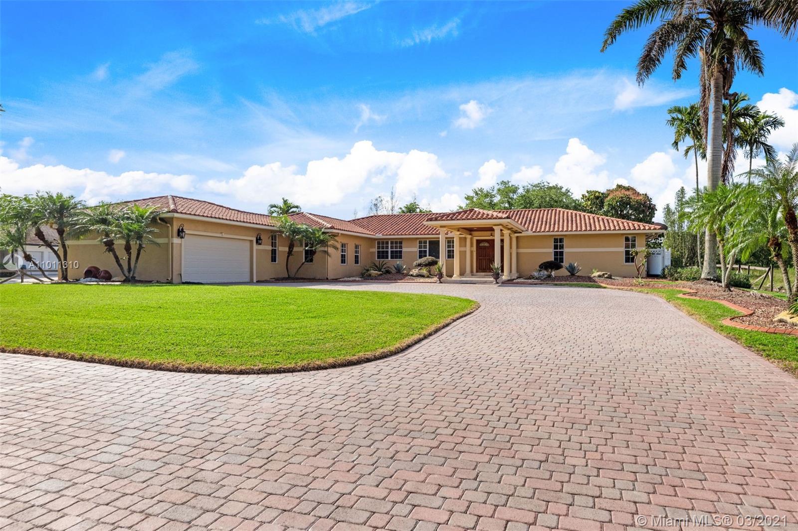 Look no further this impeccable home is an amazing opportunity to own a one story ranch pool home with total sqft of 4,795 on an acre of land with 4 large bedrooms and 3.5 bath. Formal living room features custom brick wood burning fireplace. Travertine floors throughout the entire home. Beautifully updated eat in kitchen with custom wood cabinets granite counter tops and top of the line pro series appliances. Over sized master bedroom with custom his and hers walk in closets and a stunning master bath. The attention to detail in all the finishes throughout this home makes it like no other. Beautifully fenced yard with oversized paver driveway and a gorgeous portico entrance for a real estate style entry. On a quite dead end street. Call today don't miss this opportunity.