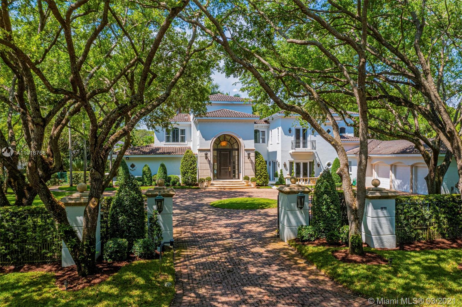 Impeccably designed residence with coffered ceilings, crown moldings, light-filled living spaces, elegant finishes and resort-like gardens. A gated entrance surrounded by a canopy of Oak and Podocarpus trees welcomes you to this two-story 7,995 Sq. Ft. home with 7 bedrooms, 4 full and 2 half baths. The entrance foyer leads to the formal living room, with views of the pool and manicured garden. Also on the main level is a formal dining room, stylish bar and professionally equipped kitchen with breakfast area. The sunny family room opens to a beautiful and sophisticated outdoor terrace, ideal for entertaining. The main suite has 2 custom-designed walk-in closets and a luxurious bathroom. This truly remarkable home also comes with an office, gym, staff room and half-basketball court.