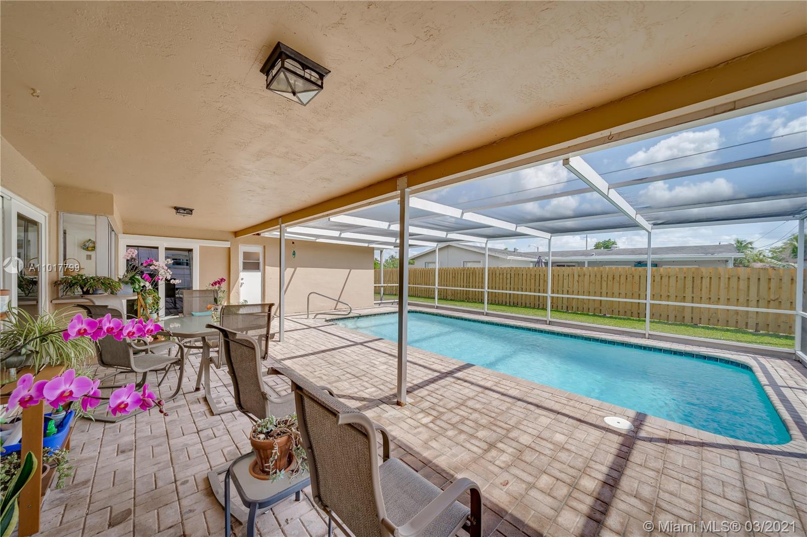 Beautiful spacious 4 Bedrooms, 2 Bath, 2 Full garage home in Sunrise. Hurricane Impact Windows. NEW ROOF! Live in a central location where you have quick access to University Drive, Shopping, Entertainment, and all Major Highways. This home features a spectacular enclosed pool for family gatherings and entertainment. Located in an oversized corner lot with NO HOA, where you can park your boat or RV. The back yard has plenty of space to add a Gazebo, Pergola, Tiki Hut, Gardening and so much more. Enjoy the split floor plan with a large master bedroom overlooking the pool. Call for a private showing today!