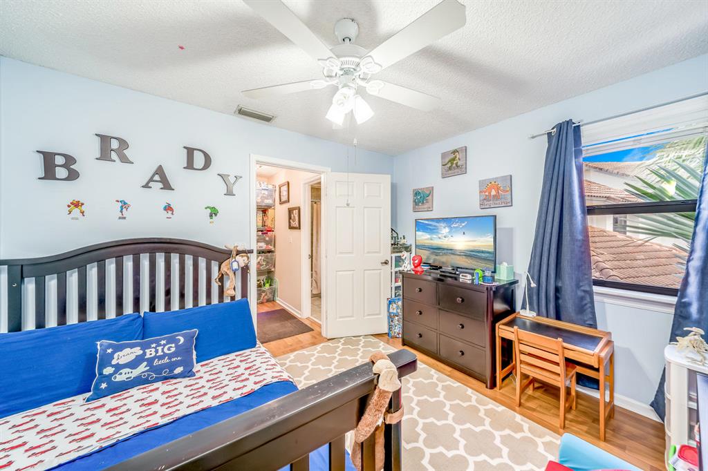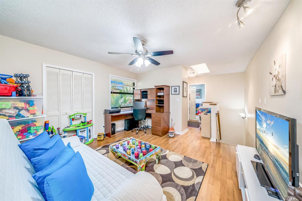 Renovated 2 bedrooms(Plus open loft w/window & closet. Add wall & that becomes 3rd bedroom) 2.5 bath/1 car garage townhome w/an enormous backyard w/brick paver patio. IMPACT GLASS THROUGHOUT! Updated kitchen w/ granite counter tops, glass tile backsplash, stainless appliances, & is open to the dining room & living room. Crown molding, chair-rail detailing & tile flooring downstairs, wood laminate flooring upstairs. Large master suite features a balcony overlooking the backyard, & a huge walk-in closet. Updated bathrooms. Largest backyard in the community! Fenced in w/bricked paver patio, perfect for entertaining & is very private. New garage door. Pull down stairs which lead to a stand-up attic with shelving for extensive