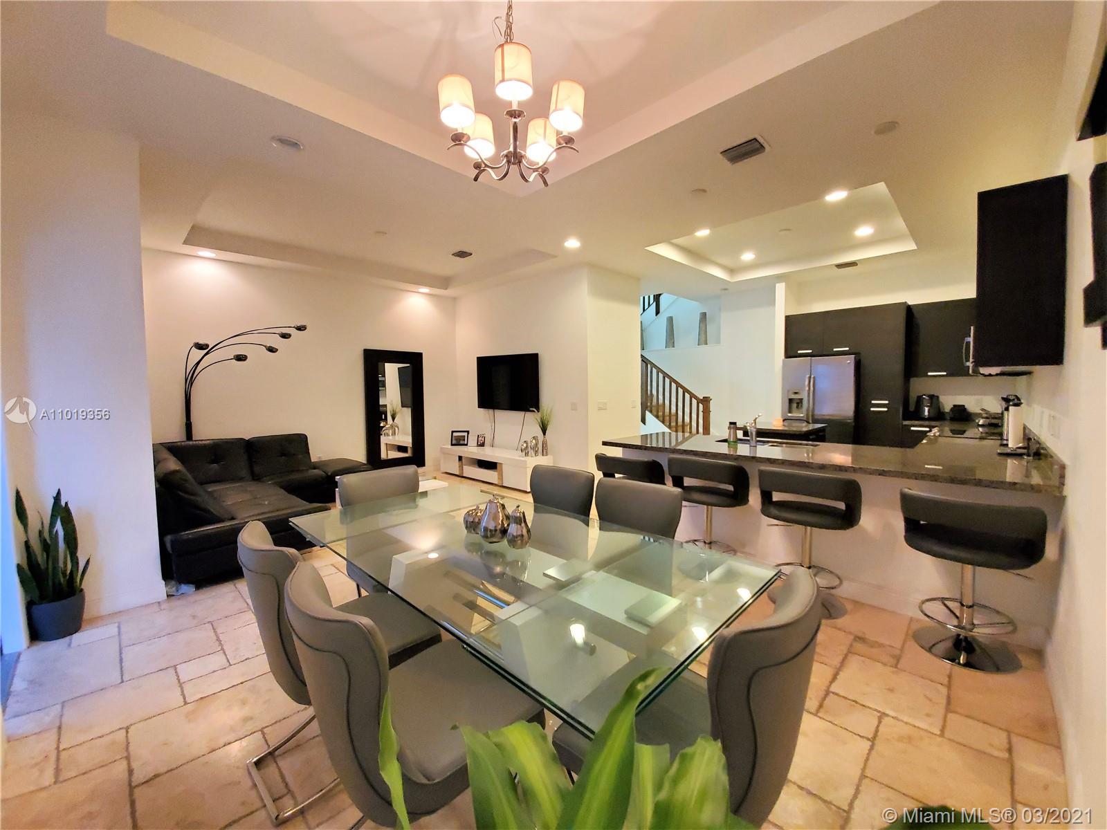 BACK ON MARKET!!. Desirable location to LIVE in Downtown Doral! 3 levels is featuring rarely 4/3/1. Three Bedrooms on second floor, one bedroom on third floor w/private bathroom, separate family room that you can easily convert into a 5th bedroom or convert into a Penthouse Guest room or office (as an apartment level)! roof top Terrace include outdoor build-in grill (BBQ). First floor with an Amazing open kitchen, granite counter top, European Cabinets, high ceilings. Relax and enjoy the Sunset views from the Terrace and master bedroom balcony. Walking distance to restaurants, shopping, Publix, schools, and a great night life events every weekend in Downtown Doral!
