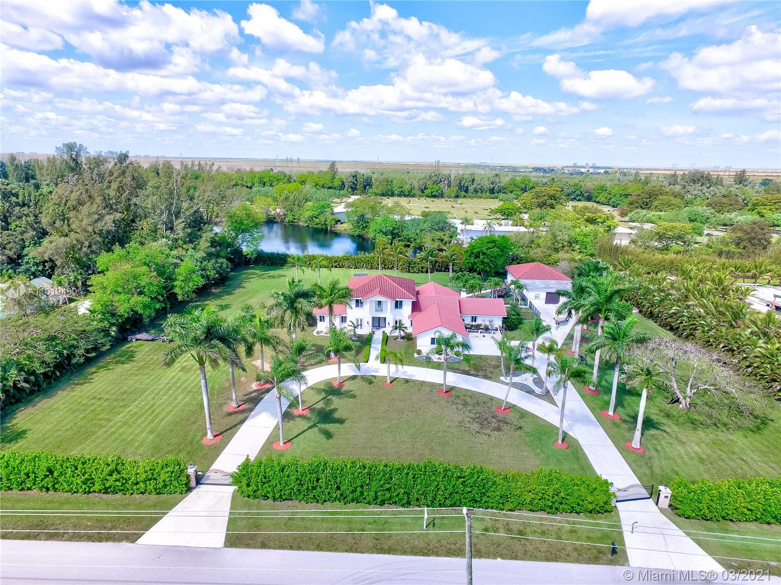Luxurious 5 Bedroom with 4 1/2 Bathroom estate in Southwest Ranches area. This beautiful home sits on 2.3 acres and has been fully renovated including Bathrooms, Bedrooms, Light Fixtures, Floorings, and a Brand new full size Chef Kitchen, with high end Stainless Steel Appliances. All new Quartz Counter Tops throughout the Kitchen, New Cabinets, and Beautiful Porcelain Flooring. New Roof / Terra-cotta tiles, New A/C unit, High Impact Windows, and Glass Doors throughout the house. Beautiful Pool & Huge Patio. Backyard overlooking the Canal. Large covered patio area, with built in BBQ. Two fireplaces, and an amazing Sauna in the master bathroom. Enormous Circular Driveway, and Lots of Parking Spaces. Can easily fit 4 to 6 cars in the Garage areas. Private Gated entrance.